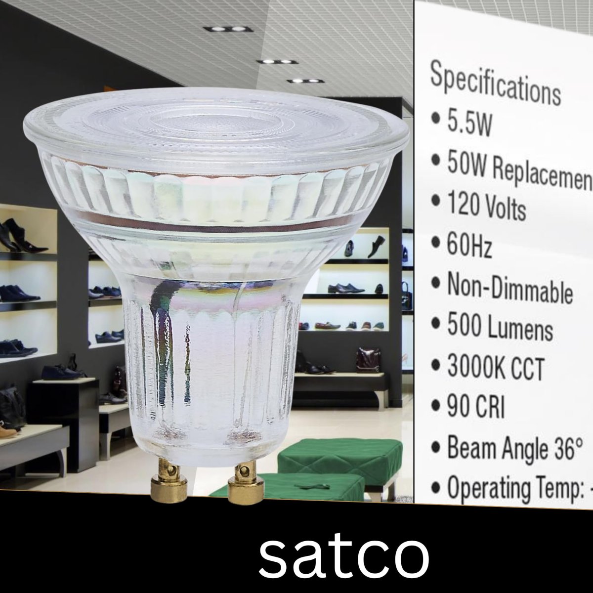 3000K Soft White Illumination: Delivers a warm, relaxing glow ideal for kitchens, living rooms, retail spaces, and galleries.. 5.5W LED Replaces 50W Halogen: Offers full brightness at a fraction of the energy use and heat output.. 36 Flood Beam Spread: Provides broad, even coverage for recessed cans, track fixtures, or accent applications.. GU10 Twist-Lock Bi-Pin Base: Compatible with standard 120V directional sockets for quick, secure installation.. High 90+ CRI for Color Accuracy: Enhances visual clarity and brings out true, vibrant colors across surfaces and displays..