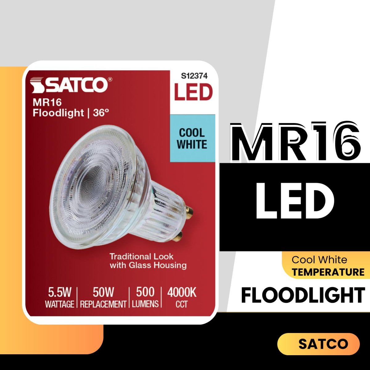 • Satco Led Mr16 Floodlight 5 5w 50w Equivalent 4000k Cool White 90 Cri 36a Beam Gu10 Twist-lock Base 120v Dimmable Clear Finish