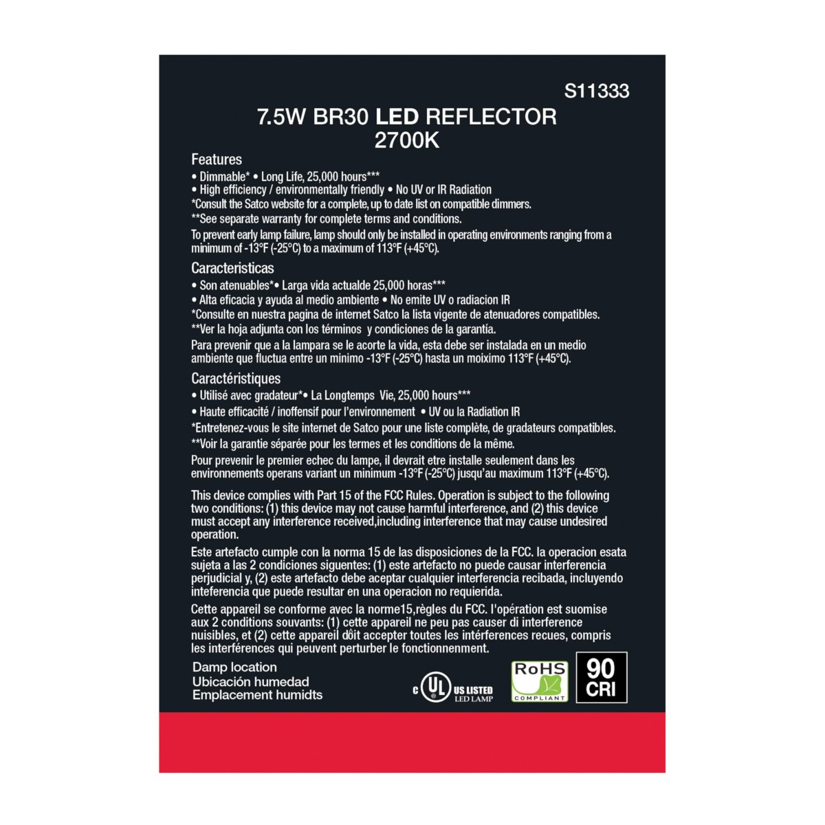 - Satco S11333 7 5w Br30 Led Lamp Dimmable 2700k Warm White 650 Lumens Gray Medium Base 0v Damp Location 65w Incandescent