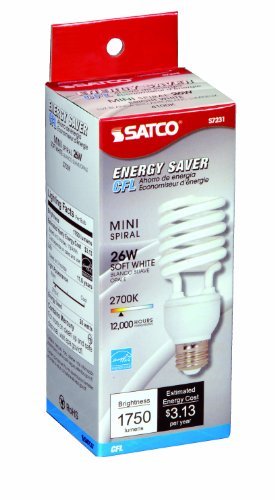 - Satco S7231 26-watt Medium Base T2 Mini Spiral 2700k 120v Equivalent To 100-watt Incandescent Lamp For Enclosed Fixtures