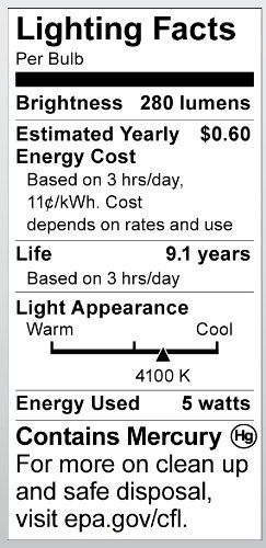 - Satco S7265 5-watt Candelabra Base T2 Mini Spiral 4100k 120v Equivalent To 30-watt Incandescent Lamp For Enclosed Fixtures