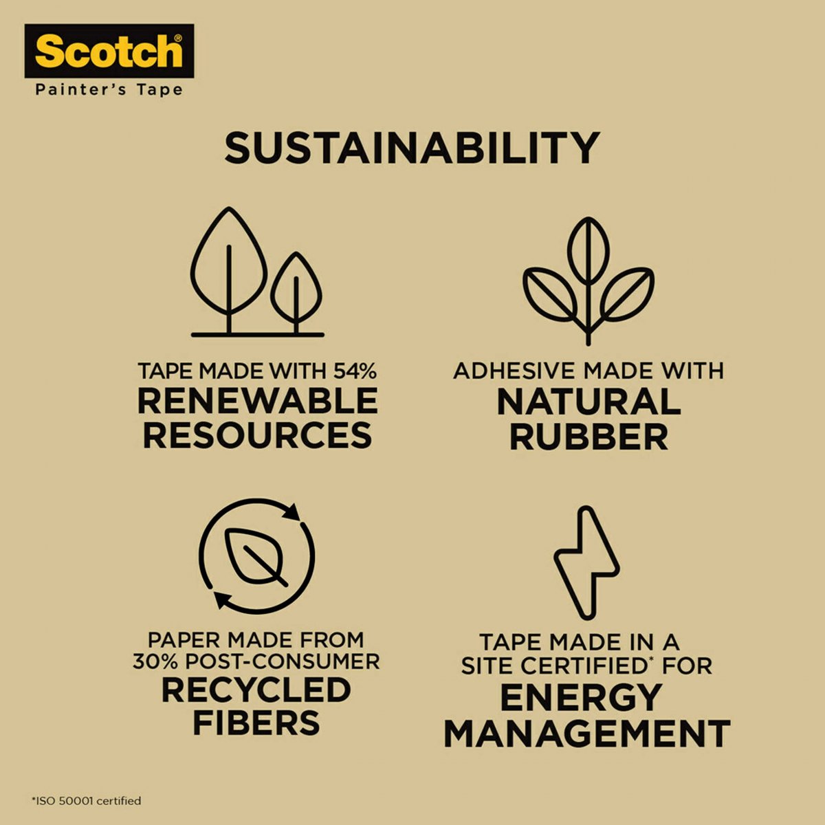 READY. SET. TAPE!: 1 roll of 1.88 inches x 60 yards tan Scotch General Purpose Masking Tape, a versatile solution for painting, labeling, bundling and general masking applications on non-damageable surfaces with a 3-inch core. DAMAGE-FREE ADHESIVE: Scotch Brand Masking Tape can stay on for up to five days on interior surfaces and one day on exterior surfaces, and it removes easily without leaving a sticky residue behind. CONQUER MOST SURFACES: Masking tape that's designed for use on painted walls, vinyl, carpet, metal and plastic. TACKLE INDOORS AND OUTDOORS: Has a strong adhesive that can be used as an indoor or outdoor tape. SUSTAINABILITY: Adhesive tape made from 55% renewable resources with a core made from 70% post-consumer waste.Other fine products