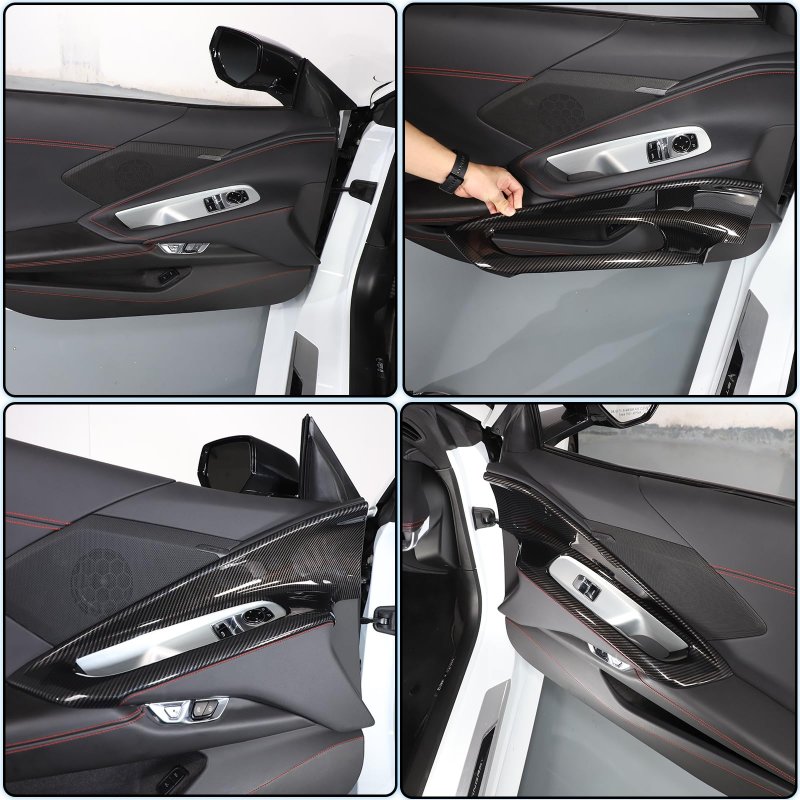 Model compatible: The Car Inner Door Handle Cover Trim compatible with Chevrolet Corvette C8 Stingray 2020 2021 2022 2023, The size of the original car is customized.. material: This Inner door panel cover trim is made of premium ABS material, transparent and smooth surface, colorfast, scratch-resistant and anti-corrosion, lightweight and durability.. Protection and beauty: Inner door panel cover trim According to the original car design, the window lift switch trim frame can brighten and improve the monotonous appearance of your original car, add unique color. And protect edge of the window lift switch button from scratches and abrasion.. Easy to install: Inner door panel cover trim is easy to install and use, No drilling/tools required. No damage to your car. Self adhesive design. Peel the tape, then carefully stick it in place, and press firmly to ensure a good grip of the adhesive..Other fine products