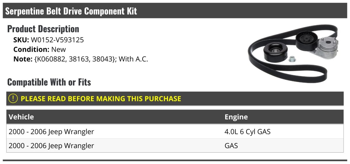 - Serpentine Belt Drive Component Kit For 2000-2006 Jeep Wrangler With Ac