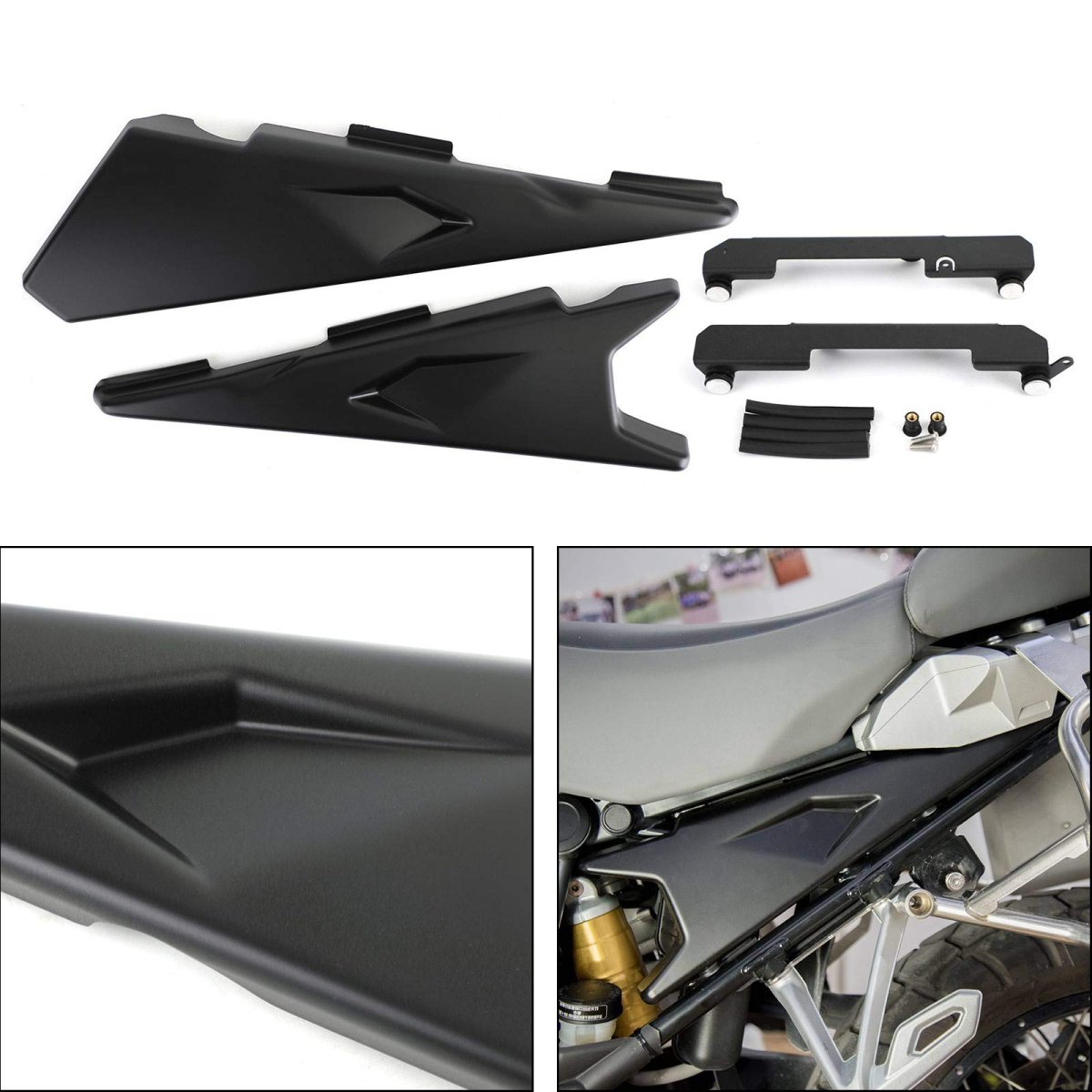 Fits for BMW R1200GS 2013-2019, ADV LC 2013-2019, R1250GS 2018-2020, R1250GS ADV 2018-2020. Made of ABS plastic, solid and durable, not easy to deform or break off.. Perfect complement to the existing side fairing to have the bike laterally closed and compact.Enhancing the design of your motorcycle.. Easy to install, without instructions..Other fine products