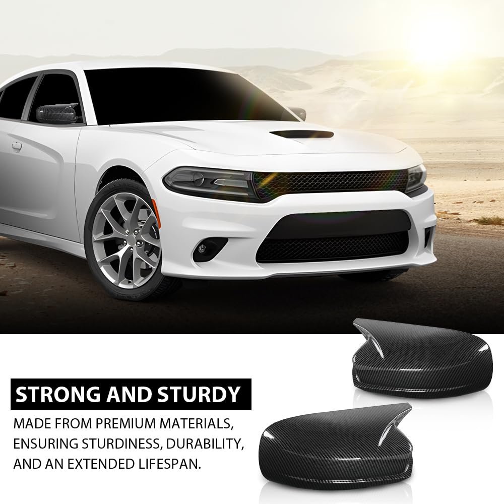 - Side Mirror Covers Shell Cap Left And Right For Dodge Charger Srt 2015-2023 Carbon Fiber
