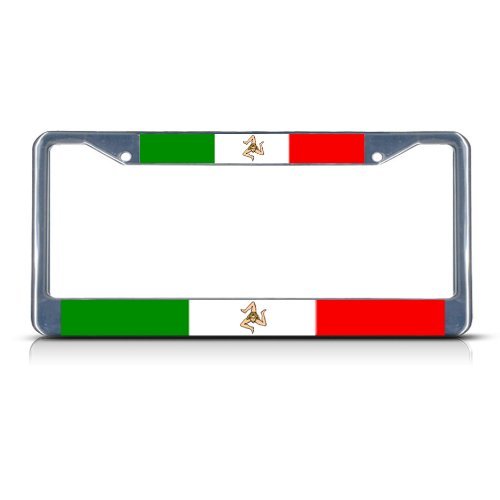 - Sign Destination Metal Insert License Plate Frame Italian Sicily Flag Weatherproof Car Accessories Chrome 2 Holes Solid Set Of