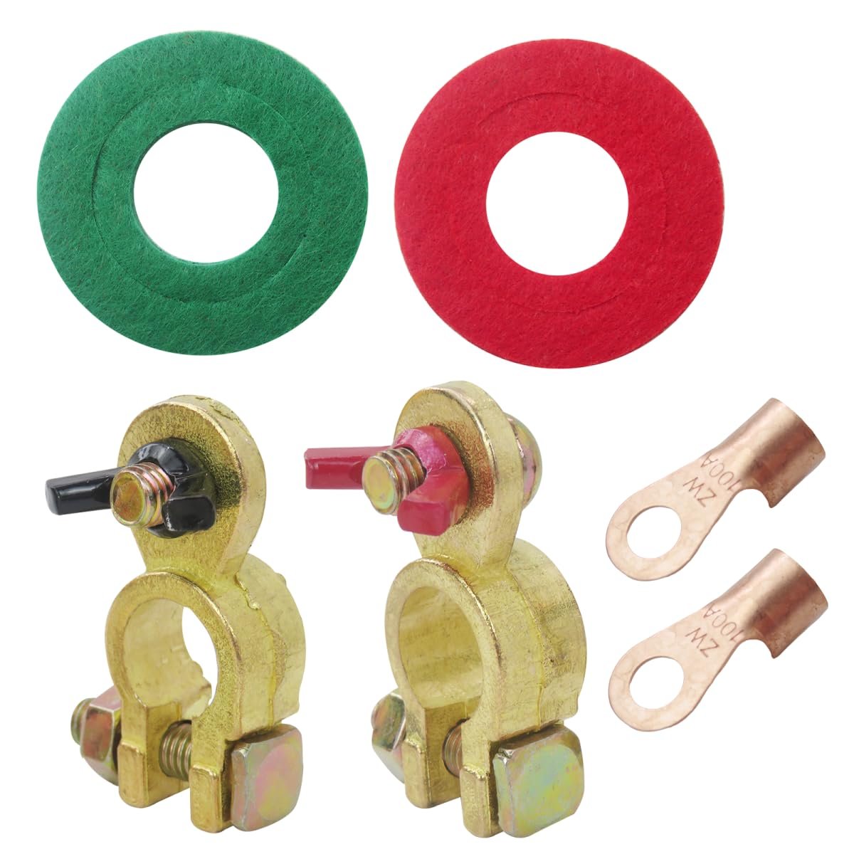 Battery Connector Wing Nuts: Battery terminals clamps with color-coded positive & negative wing nuts, which not only can help you identify positive and negative fast, also can help you quick and easy wire replacement without using a wrench. Stable wiring, not easy to drop. Protect Washers: With 1 Pair red & green battery terminal protect washer, can use for both top post batteries or cables and side post batteries or cables. Prevent corrosion around the battery terminals, prolong battery life. Premium Material: The top of post battery terminals made of brass marine-grade, has excellent conductivity and flexibility to reduce voltage distortion and power losses. Included stainless steel fasteners provide excellent corrosion resistance to battery acid and marine environments.