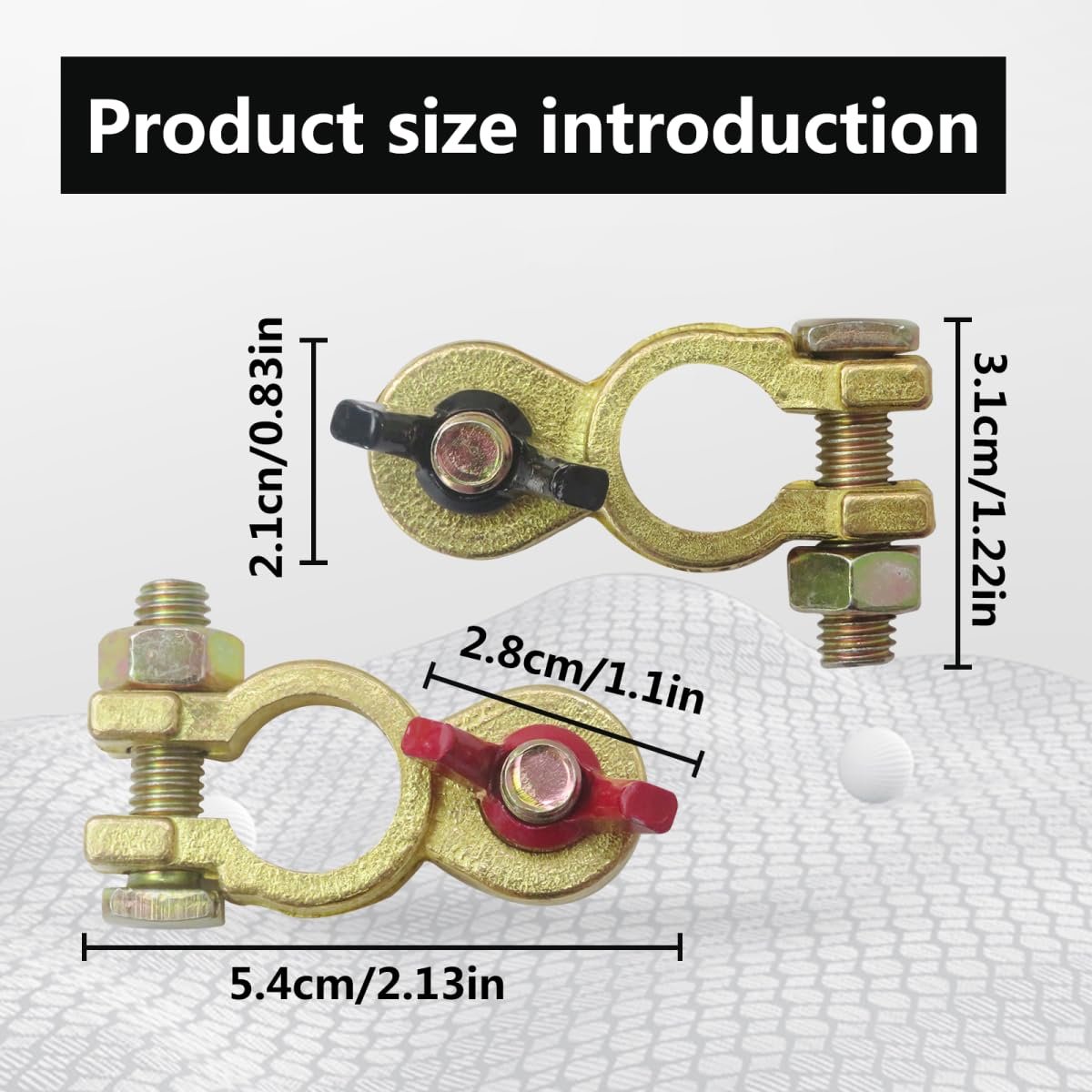 2pcs Solid Brass Battery Terminal Connector Top Post End Clamps Set Suitable For Heavy-duty Trucks Vans Cars Marine Boats
