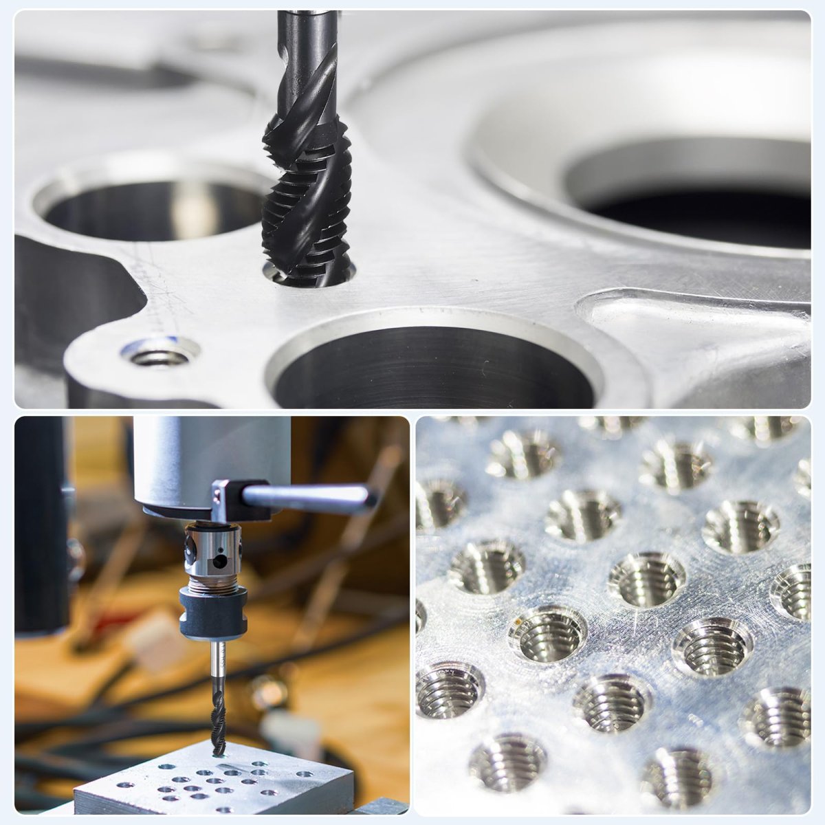 Spiral Flute Tap: Thread size: 5/16-18 UNC; thread length: 24mm / 0.94", overall length: 70mm / 2.76", square end size: 5mm / 0.2". H2 tolerance, right-hand thread cutting, with clean threads and sharp-cut cutting edges for fast and accurate tapping.. Notable Features: Spiral flute design ensures smooth chip evacuation, prevents breakage, and enables more efficient tapping. The spiral tip of the tap helps guide it into the hole, reducing the torque required to turn it, and the flutes easily remove chips and debris from the hole and machine.. Wide Applications: Spiral flute thread taps are suitable for machining blind or deep holes and sticky materials, and can be used for tapping stainless steel, aluminum, cast iron, alloy steel, ordinary steel, non-ferrous metals, hard plastics, etc. Suitable for drilling machines, tapping machines, CNC machine tools and milling machines. Used with tapping oil, you can get more precise threads and more durable taps.. Strong & Durable: Taps are made of M2 high-speed steel (HSS6542), It has high hardness, toughness and good wear resistance, good cutting performance, and can produce clean and precise holes. Nitrided surface can improve corrosion resistance and hardness, reduce friction, and extend service life, making it very suitable for a wide range of applications.. Warm Tip: It is recommended to use machine taps with tap chucks with overload protection. It is not recommended for manual use and electric drill tapping to avoid damage caused by uneven force. The tapping angle should be 90 degrees vertical. The harder the material, the slower the drilling speed..Other fine products