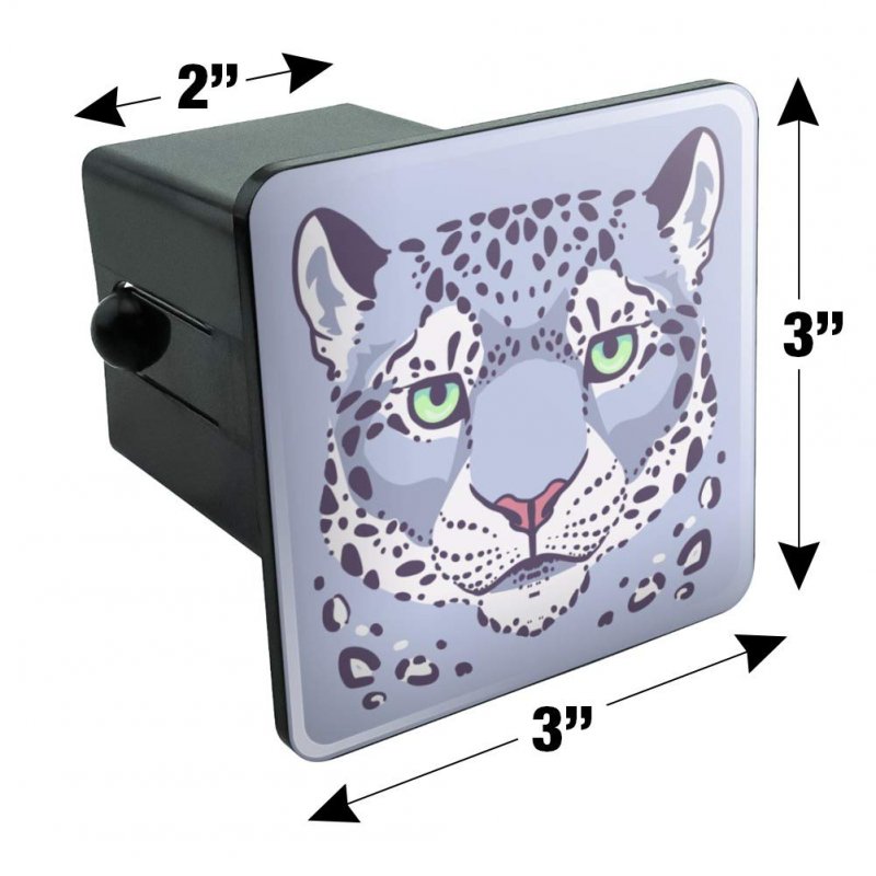 - Spotted Snow Leopard Face Tow Trailer Hitch Cover Plug Insert