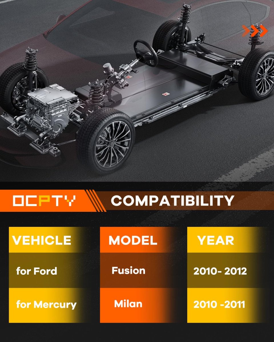APPLICABLE VEHICLES: New complete struts for 2010 2011 2012 for Fusion 2010 2011 for Mercury Milan. SPECIFICATION: To ensure a premium fit and great function, our struts are built to the same specifications as the OEM parts. PERFORMANCE: The strut supports the weight of the vehicle while also providing dampening over bumps. The strut also serves as a pivot point for the steering knuckle, which attaches to the wheel and tire assembly.Bounce in ride and the imperfections in the road will not trouble you after replacing new struts. COMPREHENSIVE TESTING: Every strut has been tested for the strength and toughness to provide superior performance,and all critical components of the strut are triple-tested to make sure reliability.Other fine products