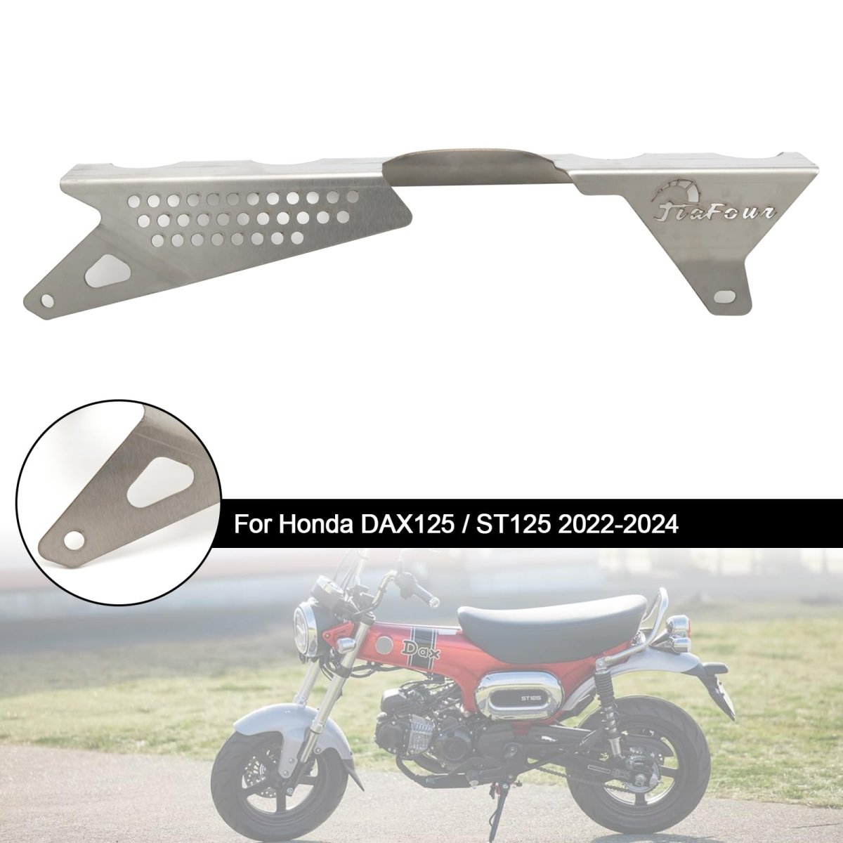 This product is suitable for Honda DAX125 / ST125 2022-2024.. Material: Stainless steel. Placement on Vehicle: Rear. Package Including: 1 * Chain Guard Cover. Protect the chain,reduce the hitting from sands and stones, reduce the scouring of rain.. Enhancing the design of your motorcycle. Aftermarket parts, for modify use, Easy to install..Other fine products