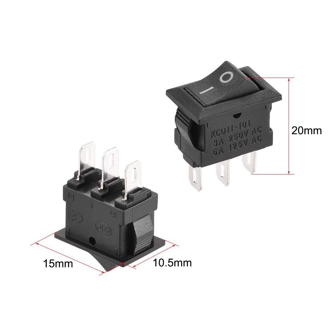 Wide ApplicationThis mini rocker switch is widely used for various kinds of household appliances and DIY power control ,such as , boat, truck , panel DIY control, lights, water dispenser, generator, coffee pot, speaker,TV, and breadboard DIY power control.. DIY As You LikeBlack Boat Rocker Switch, 3 terminals ON/ON switch,, longer life for use.. Product Basic ParametersAC 250V/3A 125V/6A, Total Size: 15*10.5*20mmL*W*H), Mounting Size: 13.5*8.5mm(L*W). AttentionSelect the appropriate soldering iron to speed up the soldering. It is recommended to use 20W soldering iron to complete the soldering within 3 seconds. The flux must be in proper amount. When soldering, try to turn the switch pin down.. Parcel contains15 x Rocker Switch . Easy to install and durable.With our strict quality control system, we test each item and ensure in good condition before we ship..Other fine products