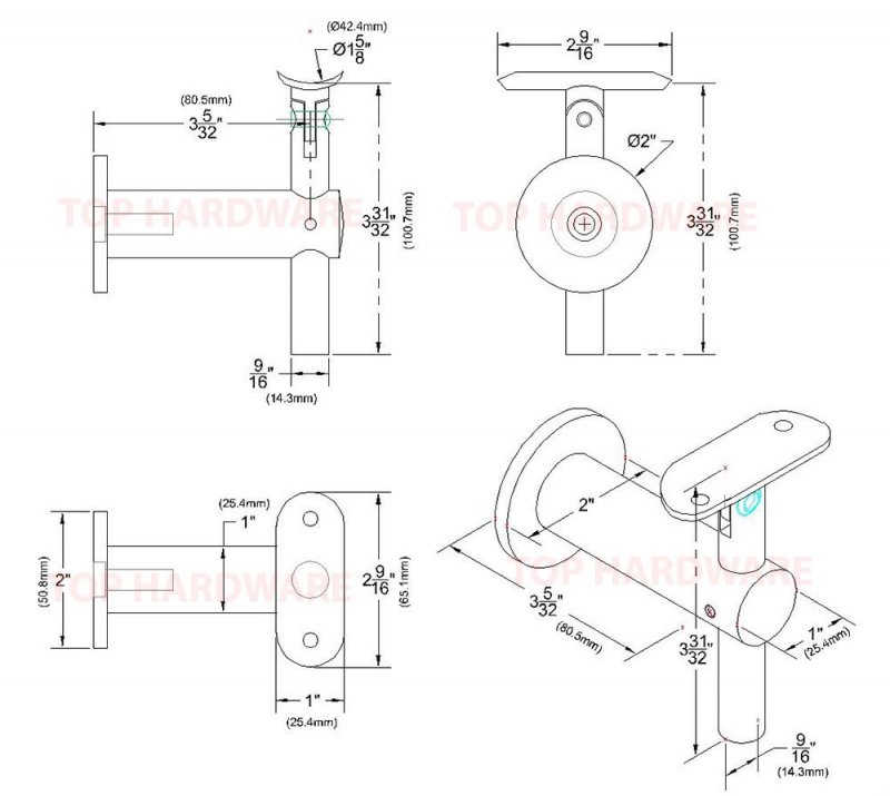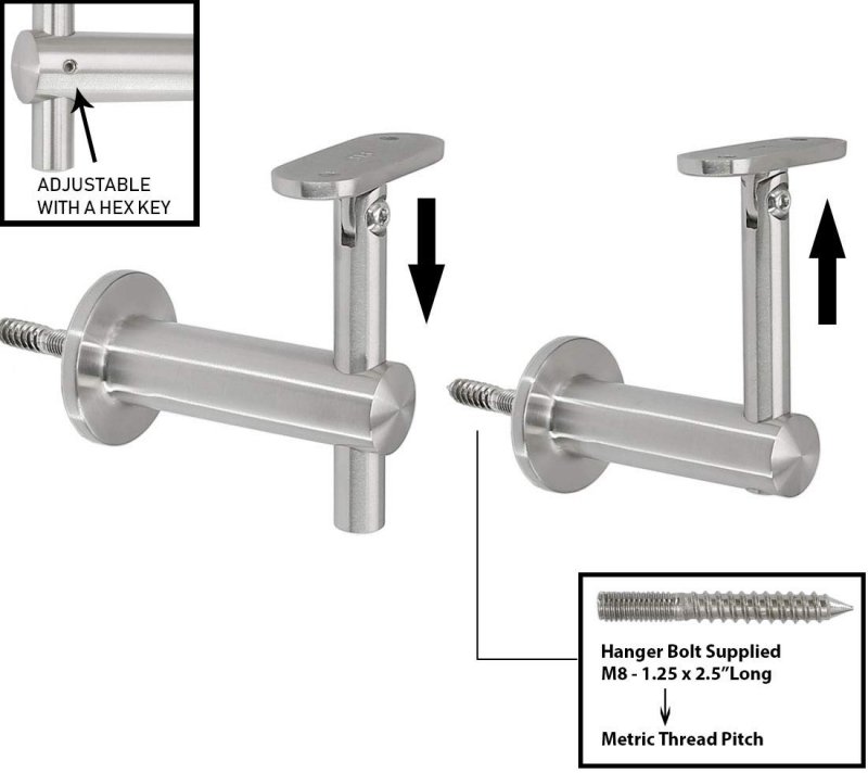 - Stainless Steel 316 Grade Wall Mount Adjustable Staircase Handrail Bracket For 1-1 2 Or 1-5 8 Od Top Tubing Wb-242 2-pack Satin