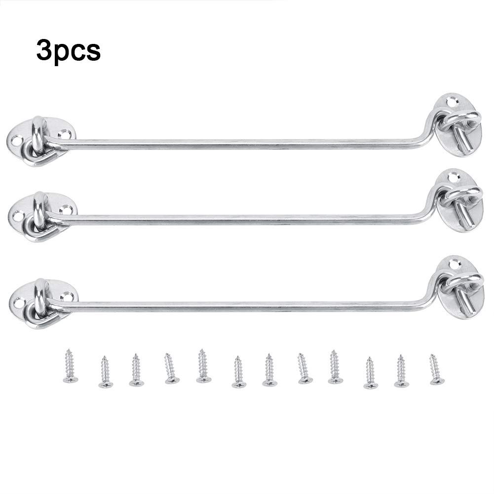 - Stainless Steel Cabin 3pcs Hook And Eye Lock Gate Window Screw In Hooks Wind Hasp Slide Barn Door 3 Pcs