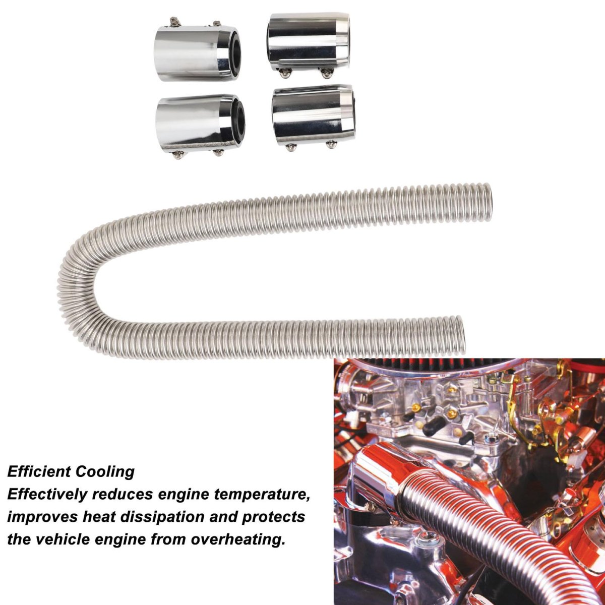 [Enhanced Durability] - The universal radiator hose kit is constructed with stainless steel material, providing exceptional and high temperature , ensuring long-lasting performance and reliability.. [Leakproof Connection] - Designed for a secure and leakproof connection, this radiator hose kit prevents coolant leakage, maintains proper pressure, and ensures optimal fluid flow, enabling the cooling system to function effectively.. [Efficient Cooling] - The hose kit ensures smooth fluid circulation within the cooling system, effectively reducing the engine temperature, improving cooling efficiency, and safeguarding the vehicle's engine from potential overheating damage.. [Superior Performance] - With its superior construction and materials, this universal radiator hose kit offers enhanced durability, capable of withstanding harsh operating conditions, including high temperatures.. [Flexible Design] - Featuring a flexible design, this hose kit allows for easy bending and adjusting angles, making installation and connection effortless and providing a more flexible wiring solution while maintaining excellent sealing capability..Other fine products