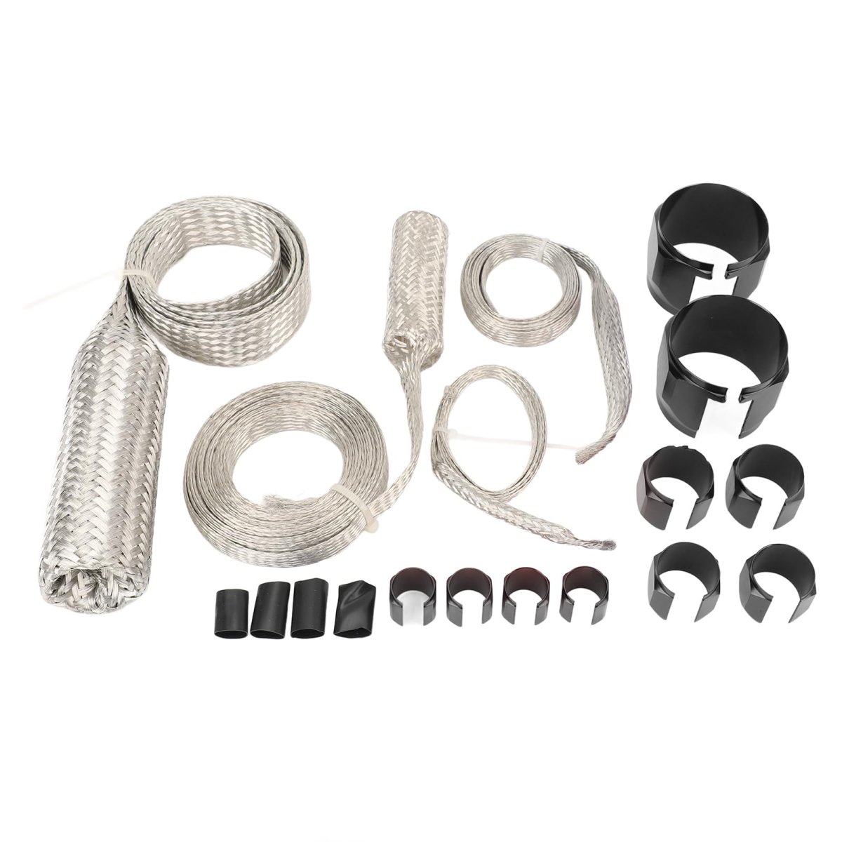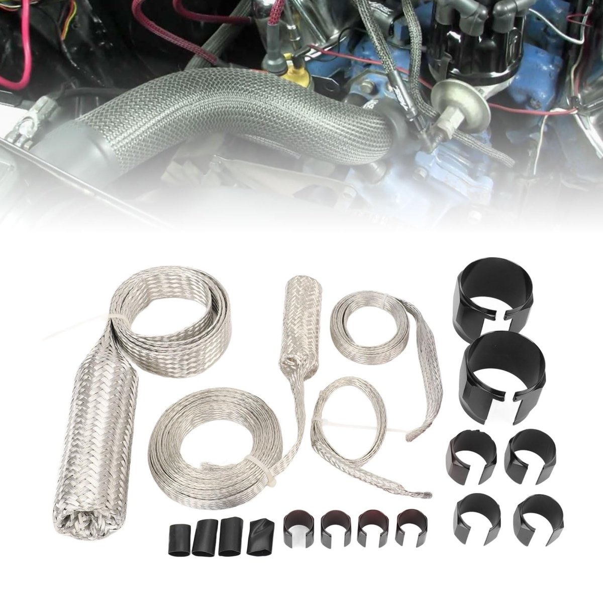 [Universal Fit] The stainless steel hose cover kit is universally compatible with vehicle radiator hoses, providing and enhancing hose longevity,. [Extreme Heat Resistance] The hose sleevings offer exceptional to extreme heat, abrasion, pressure, and , surpassing original parts,. [Stable Material] This hose cover kit is crafted from heat shielded lightweight material for long-lasting and performance,. [Versatile Usage] Designed for most fueled vehicles, these hose covers are capable of resisting various corrosive substances such as racing fuel, pump gases, coolant, and motor oil,. [Enhanced Performance] your radiator hoses with this kit, ensuring superior and longevity, for all car enthusiasts..