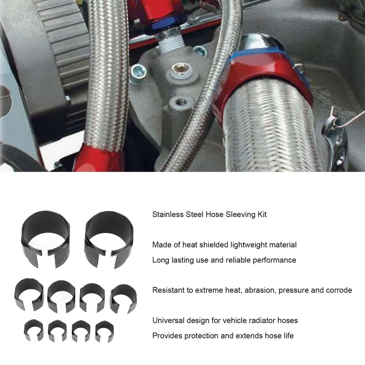 • Stainless Steel Hose Cover Kit Heat Universal Radiator Sleeving Set Dress Up For Vehicle Black