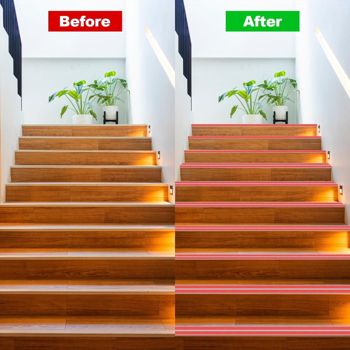 You Will Get: 10 ft yellow stair edge protector, suitable for both indoor and outdoor use. It's a good choice for your safety.. Durable Material: The Stair Edge Protector is made of PVC, which provides excellent traction, is soft and anti-collision, waterproof and non-slip, wear-resistant, and long-lasting, reducing the risk of slipping and falling.. Strong Adhesion: Our non-slip stair edge trim strips are made with a powerful adhesive that ensures a secure and long-lasting bond.. Easy to Install: Clean and dry the installation area. Measure the length of your stairs and cut the tread to size. Remove the adhesive film and adhere to the surface. Press firmly to ensure optimum adhesion.. High Applicability: This rubber stair nosing can be applied to stairs made of many materials, such as tile, wood, marble, steel or iron, metal, or glass..Other fine products