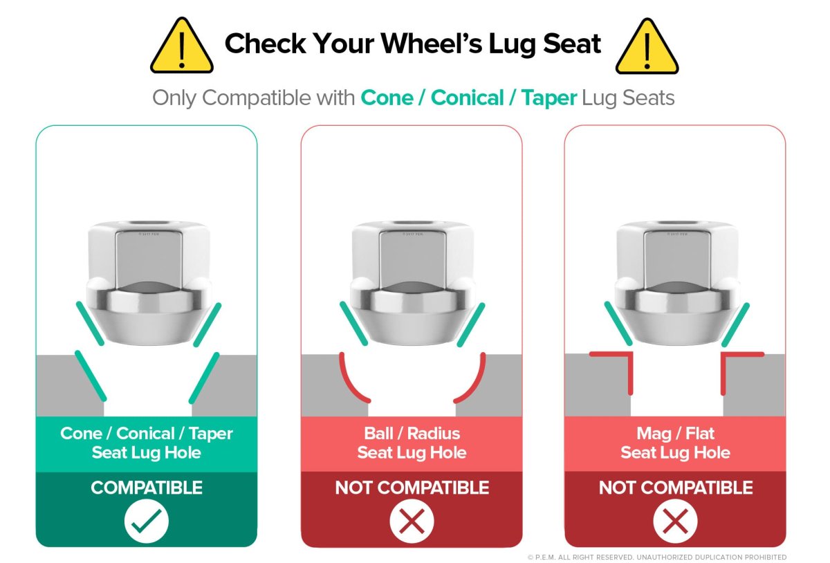 20-piece package of Short Open aftermarket lug nuts. These steel alloy lug nuts are cold-forged and heat-treated to ensure strength, performance, and durability. Machine-precision 12x1.25 threads ensure a snug fit onto vehicle's studs. Coating undergoes salt spray testing to ensure extra protection from rust/corrosion.. Total Length: 0.81 inches Thread Size & Pitch: 12x1.25 Seat Type: Cone Seat Color: Silver HEX SIZE: 19mm (3/4") STYLE: Short, Open End Lug Nuts. See Diagram for Measurements.. [Safety and Installation] Wheel hardware is an important safety component. Ensure these lugnuts are the proper size (length & width) before installing. Failure to install correct hardware is unsafe and may cause wheel/tire assembly to loosen or fall off while vehicle is in motion. Torque wrench is required for a safe installation. You'll also need a 19mm (3/4") Hex Socket Key Tool.. These 12x1.25 lug nuts are not an oem or genuine OE part, but are compatible with various Geo, Chevy, Infiniti, Mercury, Nissan, Subaru, Suzuki vehicles. We are confident you'll find our lug nuts to be a comparable OEM replacement, at a significant cost savings. Our lug nuts are made with with strong cold forged steel. Heat treated to ensure dependable strength, durability and performance. Triple coating provides the ultimate in corrosion, rust and scratch resistance..Other fine products