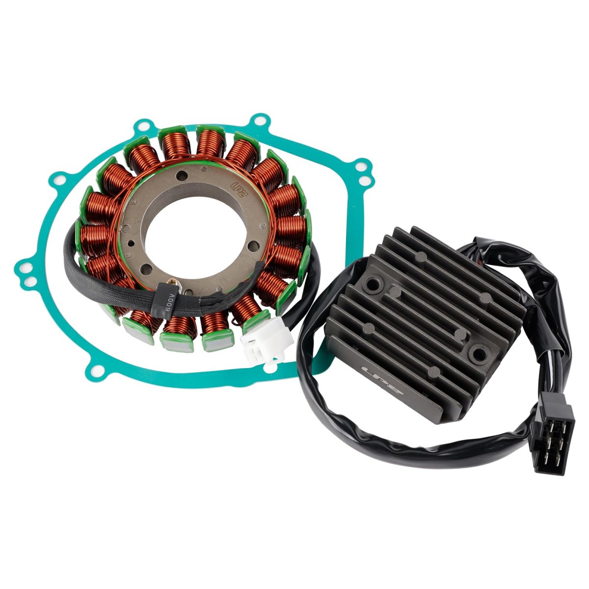Made with high-quality materials, the kit is a direct replacement for the OEM part.. This stator and regulator kit is designed for Kawasaki VN1500 Vulcan 1500 (1999-2004), VN1600 Vulcan 1600 (2003-2008).. OEM replacement part numbers include 21003-1375, 21066-1106, and more for precise fitment.. Gasket material is paper, designed for durable performance, and ready for installation without requiring complex setup.. Package includes 1 x 18-Pole Generator Stator, 1 x 6-Wire Regulator Rectifier, and 1 x Crankcase Gasket..Other fine products