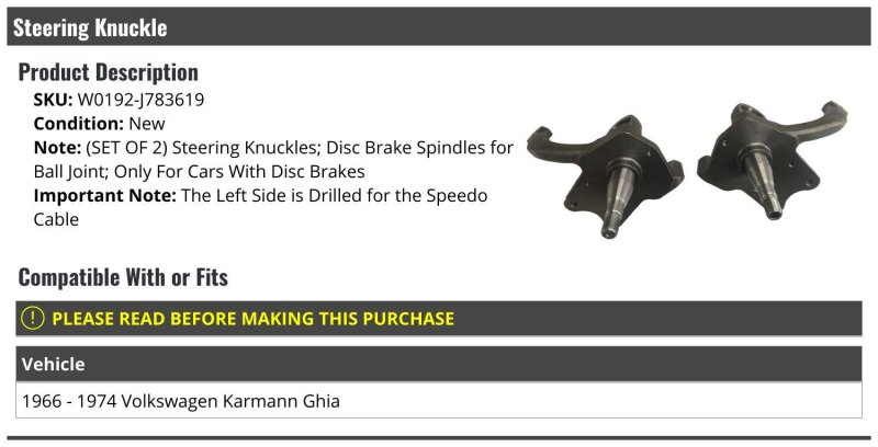 - Steering Knuckle Set Of 2 For 1966-1974 Volkswagen Karmann Ghia Only Cars With Disc Brakes