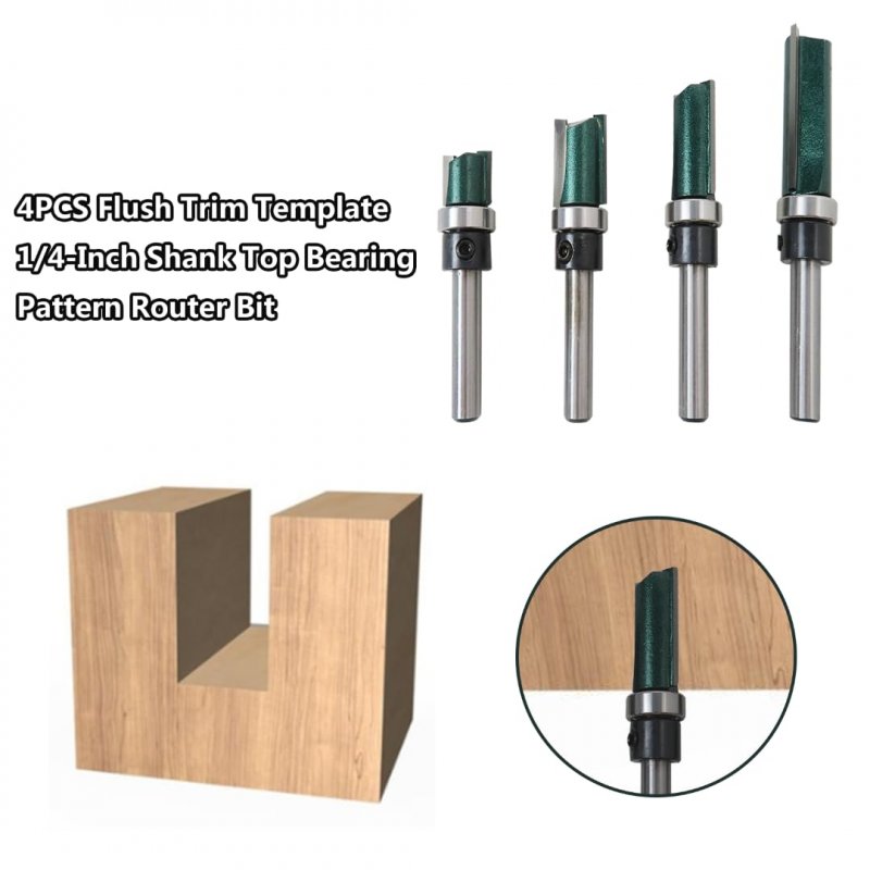 - Straight Router Bit With Bearing 4pcs 1 4-inch Shank Pattern Flush Trim For Trimming And Grooving