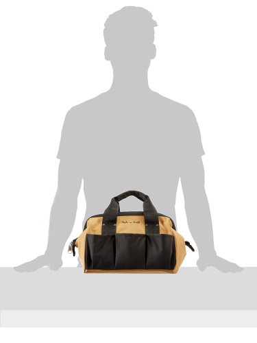 76510 Features: -Material: Heavy duty 600D polyester. -23 pockets. -Stitching with heavy duty nylon thread. -17 multi use pockets inside. Product Type: -Tool bag. Exterior Material: -Polyester/Polypropylene. Pockets Included: -Yes. Handle Included: -Yes. Number of Pockets: -23. Handle Type: -Tote. Finish: -Khaki and black. Number of Items Included: -1. Dimensions: Overall Height - Top to Bottom: -9 Inches. Overall Width - Side to Side: -12 Inches. Overall Depth - Front to Back: -8 Inches. Overall Product Weight: -1. 8 Pounds. Model # 76-510 Features: 23 pocket - 12-Inch tote bag in heavy duty 600D polyester in khaki/black combination Opens wide for easy access ; Reinforced padded carrying handles 17 multi-use pockets inside and 6 outside to organize a wide range of tools, parts and accessories Rivets used at stress points ; Rivets with caps for safety Size : 12-InchL by 8-1/2-InchW by 8-InchH.Other fine products