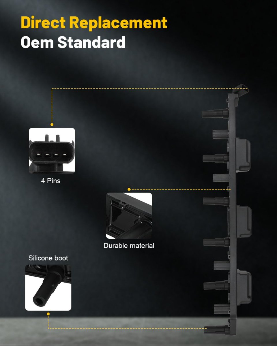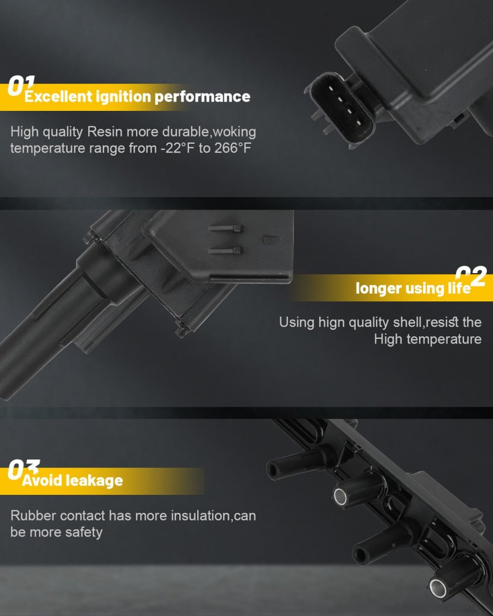 [VEHICLES FIT]: Compatible for Jeep Grand Cherokee 4L 1999. [OCPTY IGNITION COIL PACK]: Is your car experiencing rough idling or misfires? Does it struggle with poor acceleration and excessive fuel consumption? These symptoms often indicate failing ignition coils or worn spark plugs. A faulty coil pack can drastically reduce engine performance, cause hard starts, and even damage other parts like the catalytic converter. Though compact, ignition coil packs play a critical role in your vehicle's combustion system. [DURABLE & RELIABLE]: Our ignition coil packs are crafted with premium automotive replacement ignition coil materials, featuring high-grade copper windings and alloy steel cores for superior conductivity and corrosion resistance. This coil pack set delivers consistent high-voltage output and extended durability even in harsh engine environments.Other fine products
