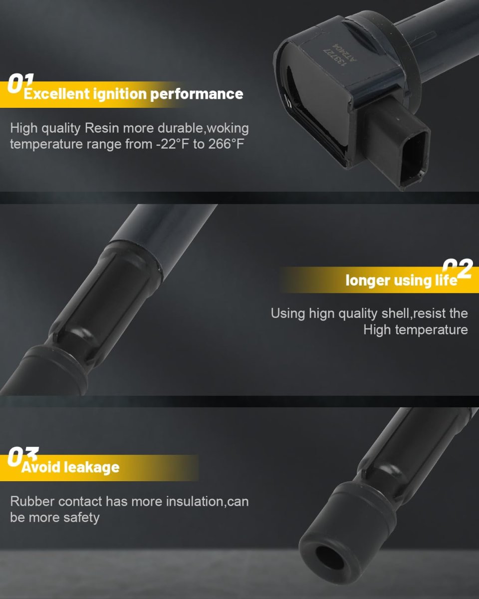 [Compatible with]: for Honda S2000 2000-2003. [User-Friendly Design]: Designed for straightforward installation, these ignition coils come with a direct plug-in design that allows for quick setup. [Durable & Reliable]: Our ignition coils are made from high-quality materials, including imported copper wire and alloy steel, which provide excellent conductivity and resistance to corrosion. This ensures stable high-voltage output and long-lasting performance under extreme conditions. [Enhanced Features for Faster Starts]: The included double iridium spark plugs offer refined center electrode technology to maximize spark energy, improving ignitibility and ensuring smoother engine operation without worrying about misfires. This upgrade contributes to a more efficient fuel combustion process. [Restore Engine Efficiency]: Designed as direct replacements, these ignition coils address common issues like poor gas mileage, engine misfires, rough idling, and check engine lights. By replacing faulty coils, you can enhance drivability and restore your vehicle's performance.Other fine products
