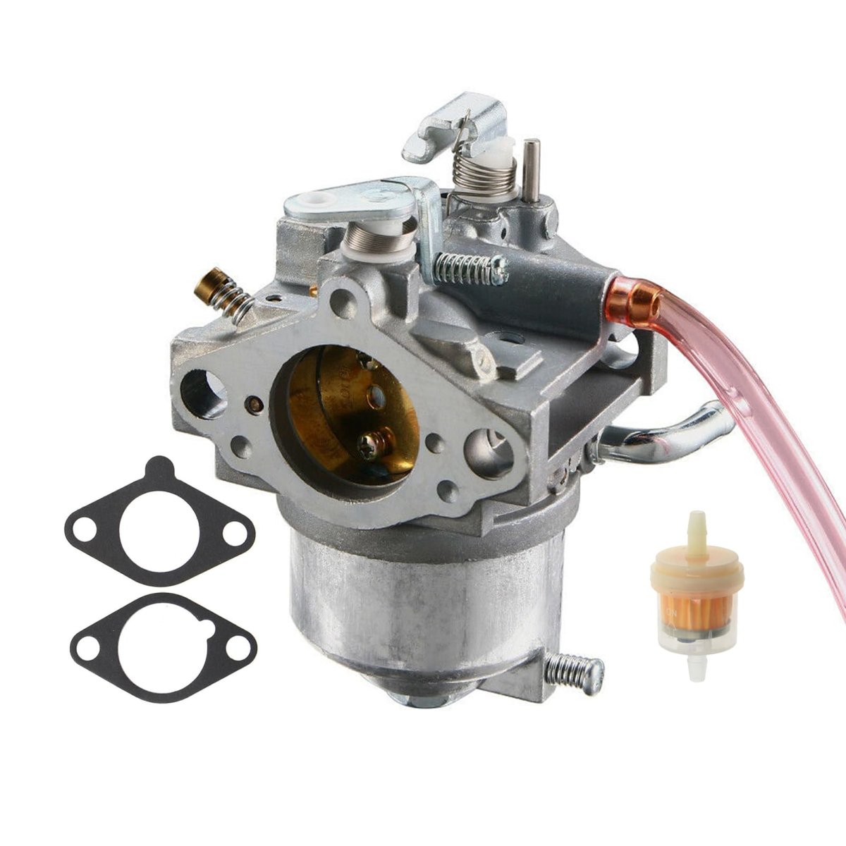 [FITMENT]: Carburetor for Kawasaki FB460V 4 Stroke Generator Engine.. [Part Number]: Replacement for 15003-2467, 15003-2777, 15003-2796. [INSTALLATION]: Complete & preset, bolt it on directly and it starts right up.. [PACKAGE]: 1 FB460V Carburetor, 1 fuel filter, 2 gaskets (as shown).Other fine products