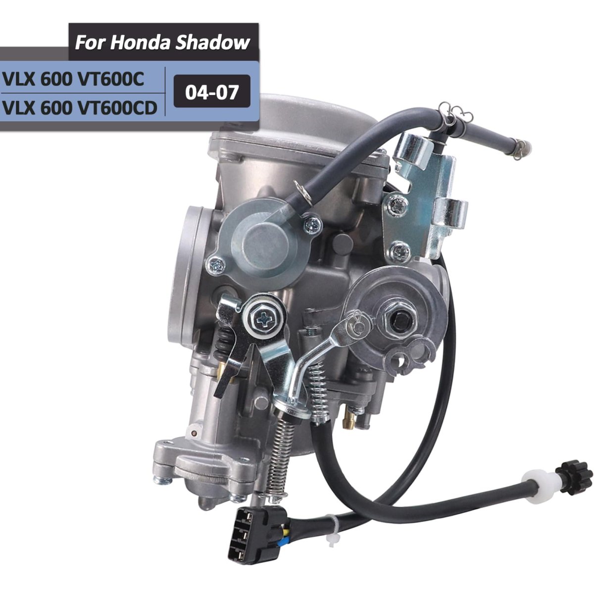[FITMENT]: Carburetor for Honda (2004-2007) Shadow VLX 600 VT600C.. [FITMENT]: Carburetor for Honda (2004-2007) Shadow VLX 600 VT600CD.. [REPLACEMENT]: 16100-MFH-671, 16100-MZ8-U42, 16100-MZ8-U43. [INSTALLATION]: Complete & preset, bolt it on directly with no modification and it starts right up.. [PACKAGE]: 1 Carburetor (main jet 122/pilot jet 50), 1 choke cable, 1 fuel filter, extra jets 120 125.Other fine products