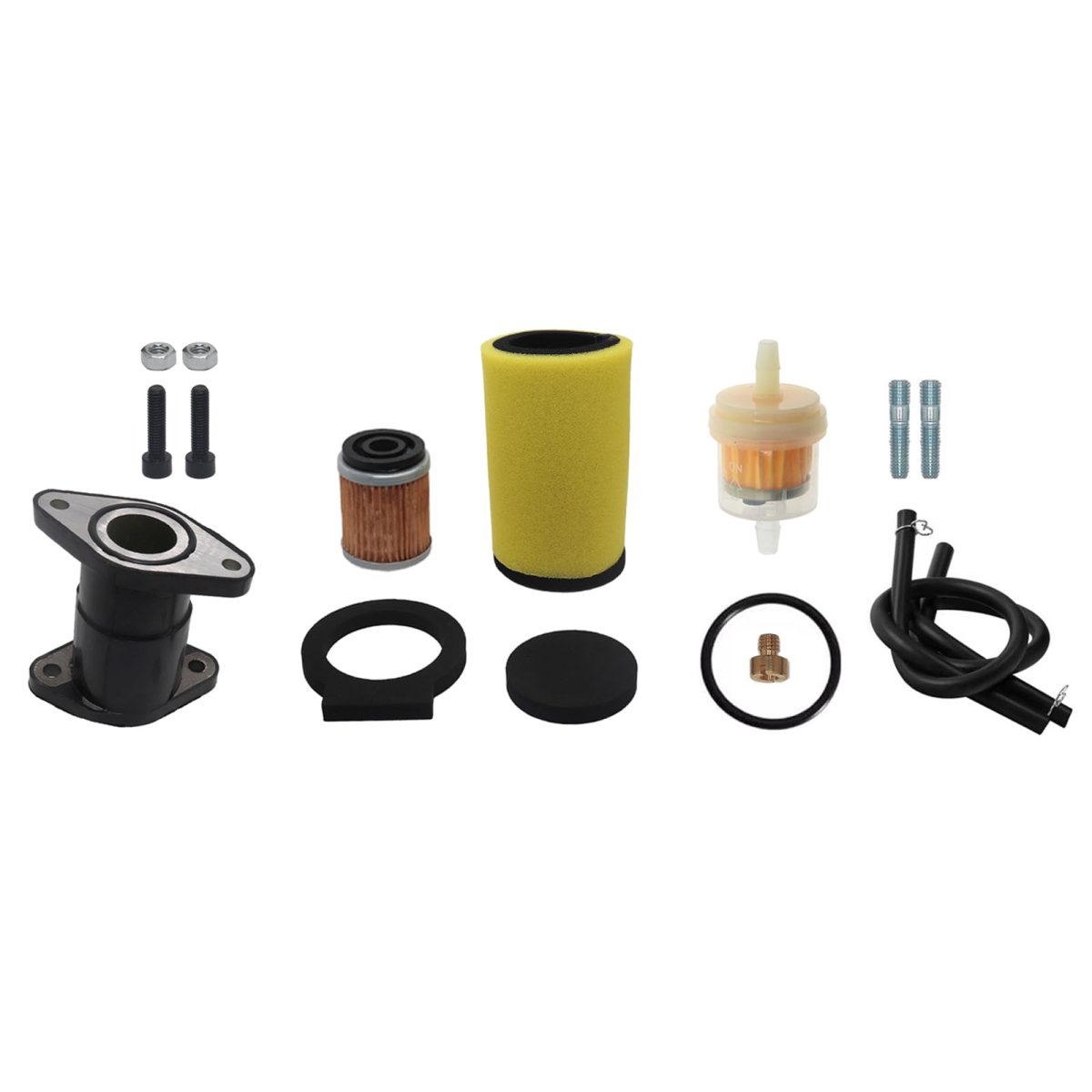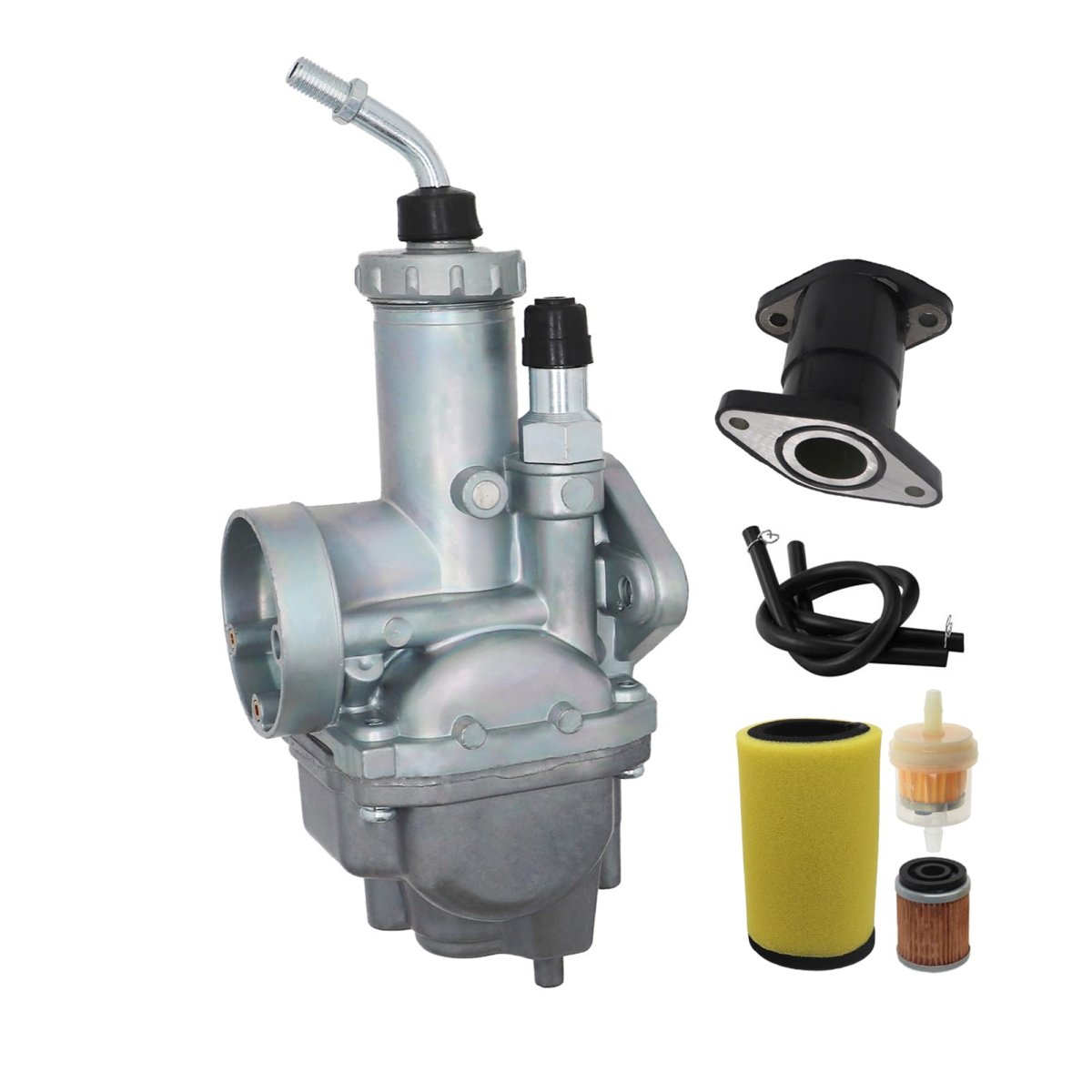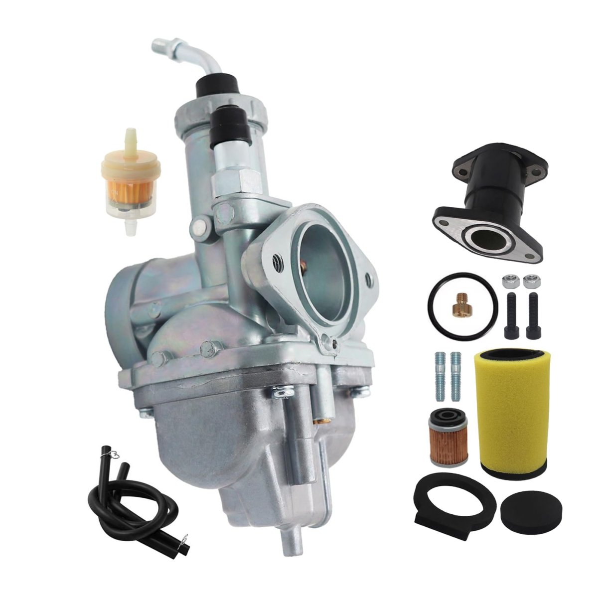 [FITMENT]: Carburetor for Yamaha Timberwolf 250 YFB250 1992-1998.. [FITMENT]: Carburetor for Yamaha Timberwolf 250 YFB250FW 1994-2000.. [REPLACE]: Part numbers #4KD-14101-02-00, 4BD-14101-00-00. [INSTALLATION]: Complete & preset, bolt it on directly and it starts right up.. [SIZES]: Main jet 120, pilot jet 43; Air filter outer 41mm, intake side inner 29mm.. [PACKAGE]: 1 Carburetor, 1 intake manifold, 1 fuel filter, 1 air filter, 1 oil filter.Other fine products