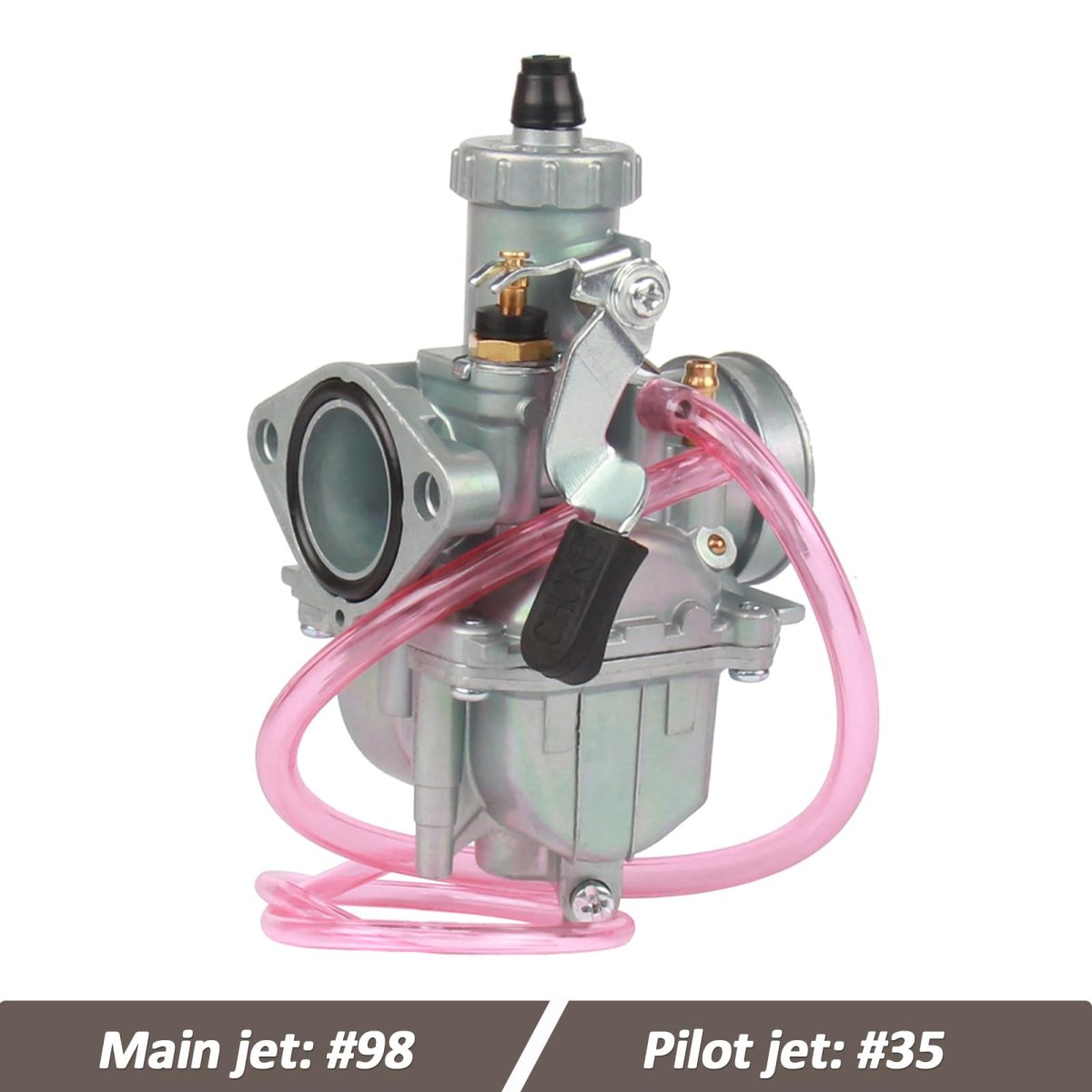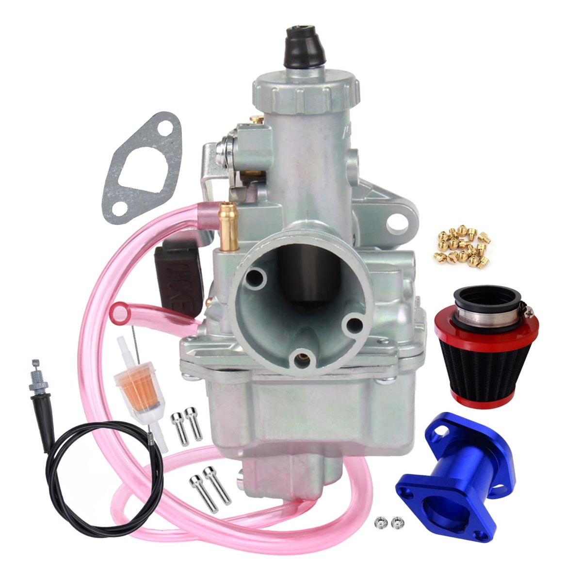 For Predator 212cc 196cc BT200X CT200U GX200 GX160 KT196 Mini Bike Go Kart.. [SIZES]: Main jet #98, pilot jet #35; Manifold outlet 26mm, air filter outlet 38mm.. [INSTALLATION]: Complete & preset, bolt it on directly and no modification is needed.. [PACKAGE]: Carburetor + fuel filter + intake manifold (blue) + 38mm air filter + extra jets + throttle cable.Other fine products