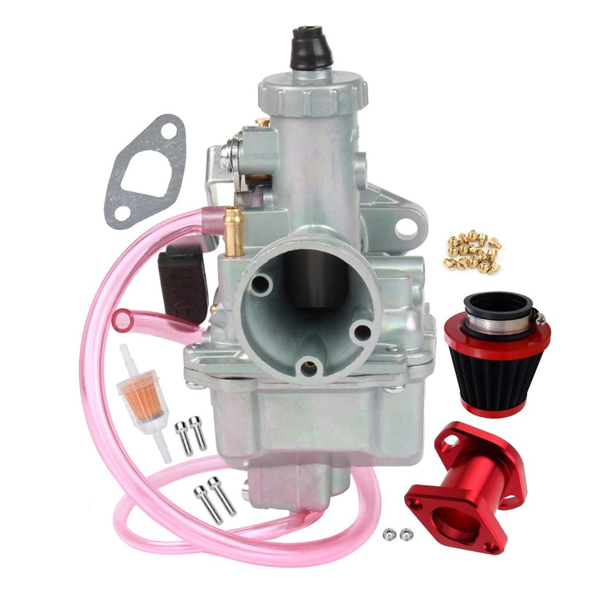 For Predator 212cc 196cc BT200X CT200U GX200 GX160 KT196 Mini Bike Go Kart.. [SIZES]: Main jet #98, pilot jet #35; Manifold outlet 26mm, air filter outlet 38mm.. [INSTALLATION]: Complete & preset, bolt it on directly and no modification is needed.. [PACKAGE]: Carburetor + fuel filter + intake manifold (red) + 38mm air filter + extra jets.Other fine products