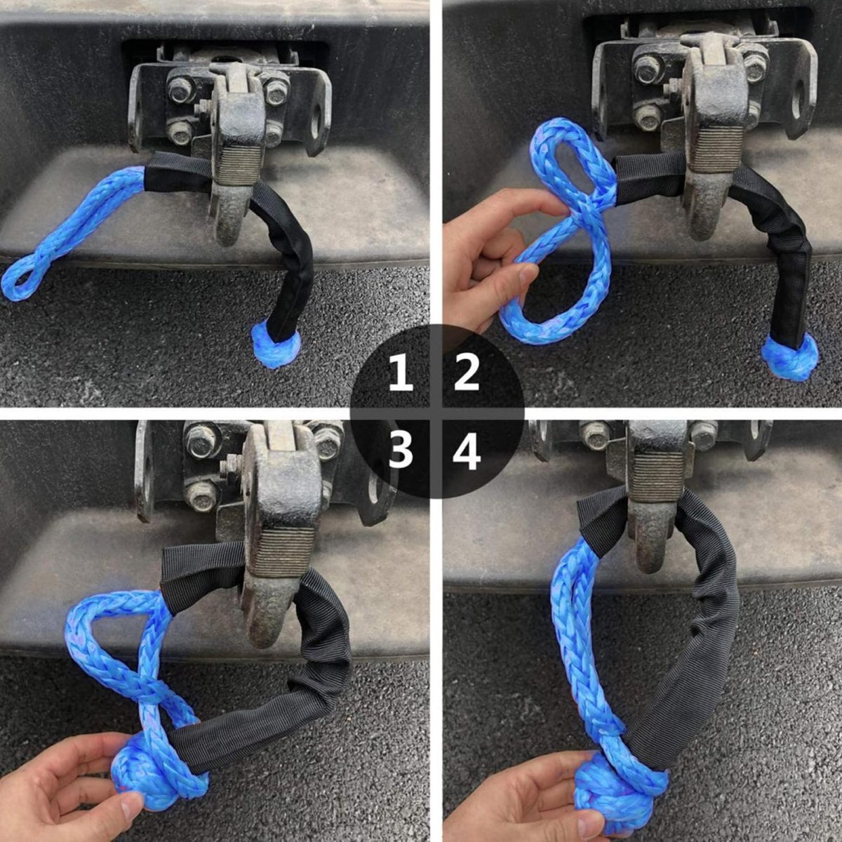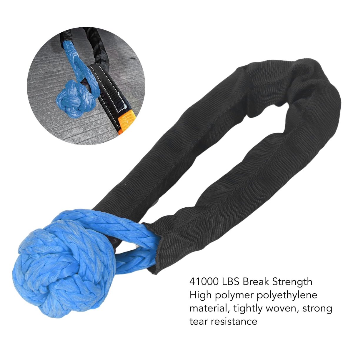 Extraordinary Tear Resistance: Crafted from polymer polyethylene material and tightly woven through a rigorous mechanical process, our soft shackle demonstrates astonishing tear resistance. Its maximum tensile strength goes as high as 41000 LBS, a testament to its superior durability and strength.. Innovative Infinite Knot Design: Our soft shackle adopts the innovative infinite knot design, making shackle application and removal significantly simpler. Unlike traditional metal shackles, pulling only tightens the knot, and it never deforms, providing unparalleled ease of use and exceptional longevity.. Protecting Sleeve Included: Every soft shackle purchase comes with an Oxford cloth protective cover. This cover wards off damaging rays, boosts the soft shackle's friction, and reduces wear, thereby enhancing its durability exponentially. It's a convenient way to extend the life of your soft shackle without any extra hassle.. Superior Lightness and Safety: Weighing less than the outdated heavy metal shackles, our soft shackles are not only easier to carry but also significantly safer. Whether you're utilizing it on cars or around people, it minimizes the risk of injury, making it a option for your every scenario.. Versatility at Its Best: This is the must-have tool for all drivers, regardless of whether you're hitting the off-road trails, powering through on your ATV, or gearing up for a snowy winter. This lightweight yet heavy-duty shackle is your ready solution for emergency and more. Its universal utility makes it an invaluable addition to your toolkit..