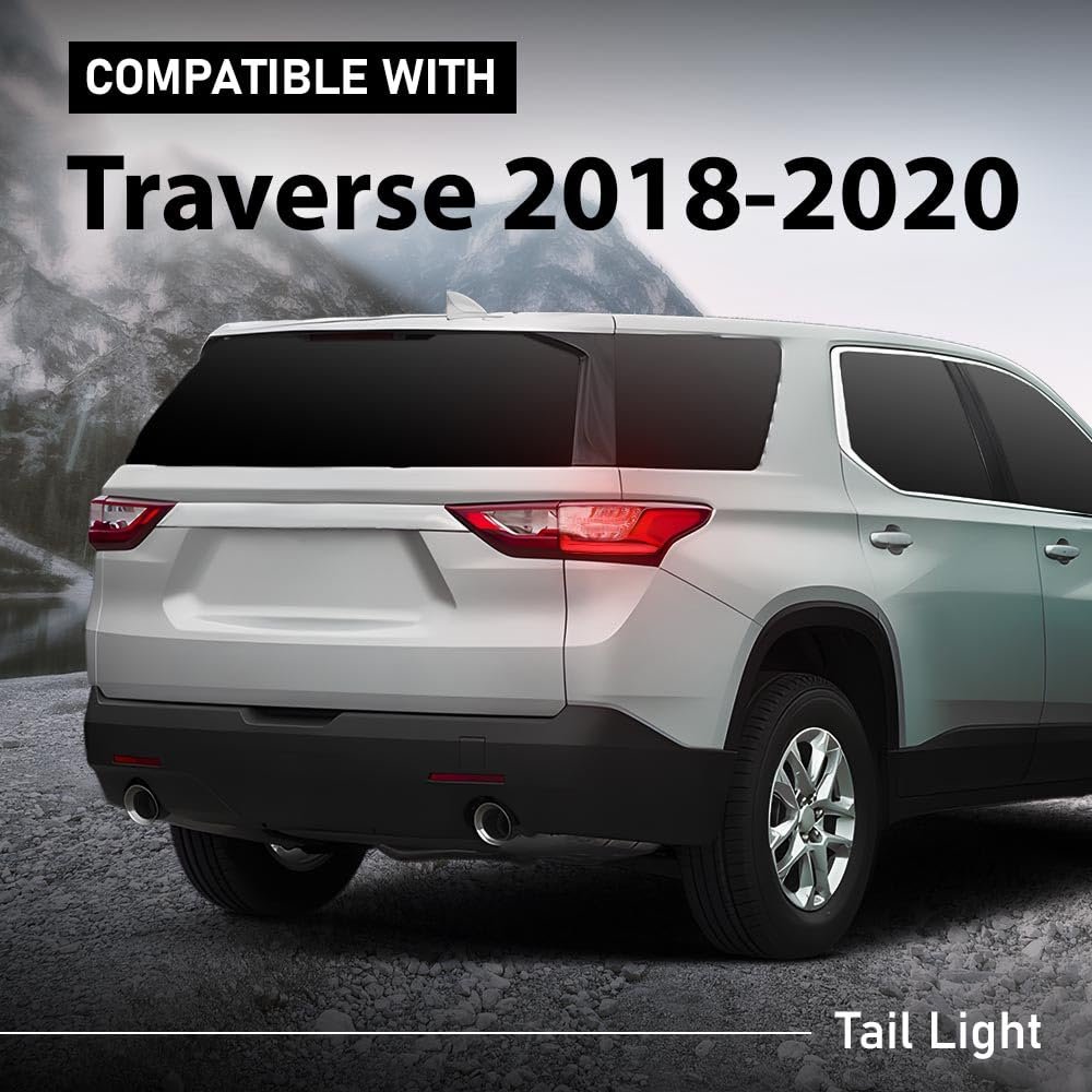 Compatibility:Compatible with Chevy Traverse 2018-2021. Function:The PMMA tail light lens will not easily turn yellow or or crack. The impact resistant housing ensures reliable vibration resistance, UV protection and rain corrosion resistance. Excellent Design: Excellent design enhances aesthetics, tail light brings a different appearance to your vehicle thats great for show use or to replace old and worn tail lights. OE Standard: Meets the Original Equipment (OE) standards, ensuring replacement fit just like the original. Interchange part number:84618032, GM2805130. Advanced Technology: advanced technology and implemented strict quality control measures, ensuring excellent performance and quality.Other fine products