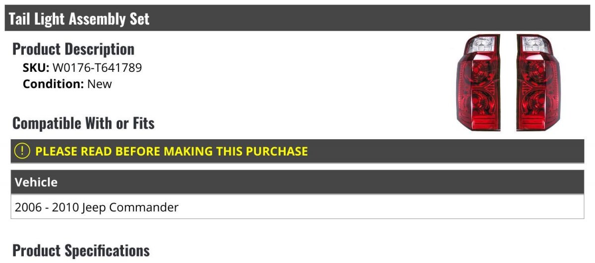- Tail Light Assembly Set Of 2 Compatible With 2006-2010 Jeep Commander