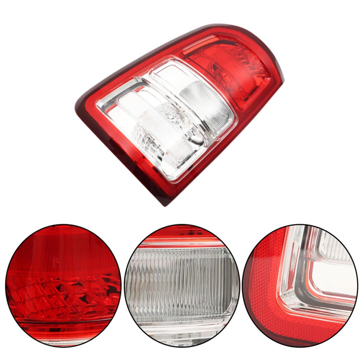 Fitment: Replacement for Ram 1500 2019-2023 rear left driver side red brake tail lamps assembly 55112989AE CH2800221. Item Advantages: Made of great quality materials, fully sealed construction, all-weather adaptable, adding style and appearance to your vehicle. Package Included: 1 tail light lamp driver left (without light blub). Easy Installation: Easy to install, plug and play, no drilling or modifications required. Driving Safer: The clear and red lens provide bright red color, and sided secure reflector provide better visibility and more focused beams, with enough brightness at night, can work well in rainy and foggy weather to make your daily driving safer.Other fine products