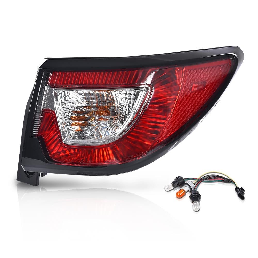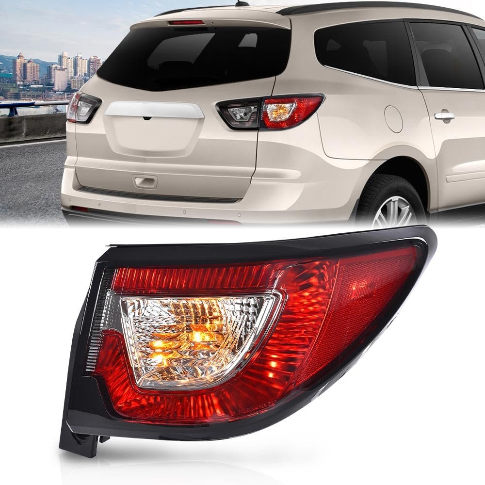 COMPATIBILITY:Compatible with Chevy Traverse LTZ 2013-2016.Compatible with Chevy Traverse Premier 2017.Compatible with Chevy Traverse (submodel: LS, LT) 2013-2017.. PREMIUM MATERIAL:Tail light adopts PMMA material lampshade and ABS base, the whole structure of the light body is strong and durable, not easy to yellow or rupture, and the violent airflow will not affect the normal lighting function of the tail light.. OE STANDARD:Meets the Original Equipment (OE) standards.Interchange Part Number:84266020, 23301757, GM2805112. SEALED DESIGN:The tail light adopts sealed design, with one-way vent at the back, avoiding rain, snow, sand infiltration, effectively avoiding water vapor stagnation in the interior, ensuring normal illumination.. EASY TO USE: The design of the taillight has been subjected to strict quality inspection, and it is very easy to install and use, saving time and labor. Professional installation is highly recommended for first time use.Other fine products