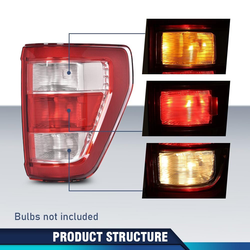 Compatibility: Compatible with Ford F150 XL 2021-2023 (2-Door Standard Cab 4-Door Extended Cab 4-Door Crew Cab), Fit for with Factory Incandescent and w/o Blind Spot Tail Light Models Only, Not Fit for with Factory LED Tail Light Models, Not Fit for with Factory Blind Spot Tail Light Models. Function: Our tail light lens is UV resistant and shockproof.The lenses will not easily turn yellow or or crack. The impact resistant housing ensures reliable vibration resistance, UV protection and rain corrosion resistance.. Design: Excellent design enhances aesthetics, tail light brings a different appearance to your vehicle thats great for show use or to replace old and worn tail lights.. Protect: Severe bumpy driving will not hinder the normal illumination of the tail lights.Adopting a fully sealed design and equipped with one-way ventilation openings to prevent moisture from being trapped inside.Enhance rear visibility and appearance, making your vehicle more easily visible to other drivers and passengers.. OE Standard: Meets the Original Equipment (OE) standards, ensuring replacement fit just like the original. Interchange part number: FO2818159, ML3Z13404E, ML3Z13404A.Other fine products
