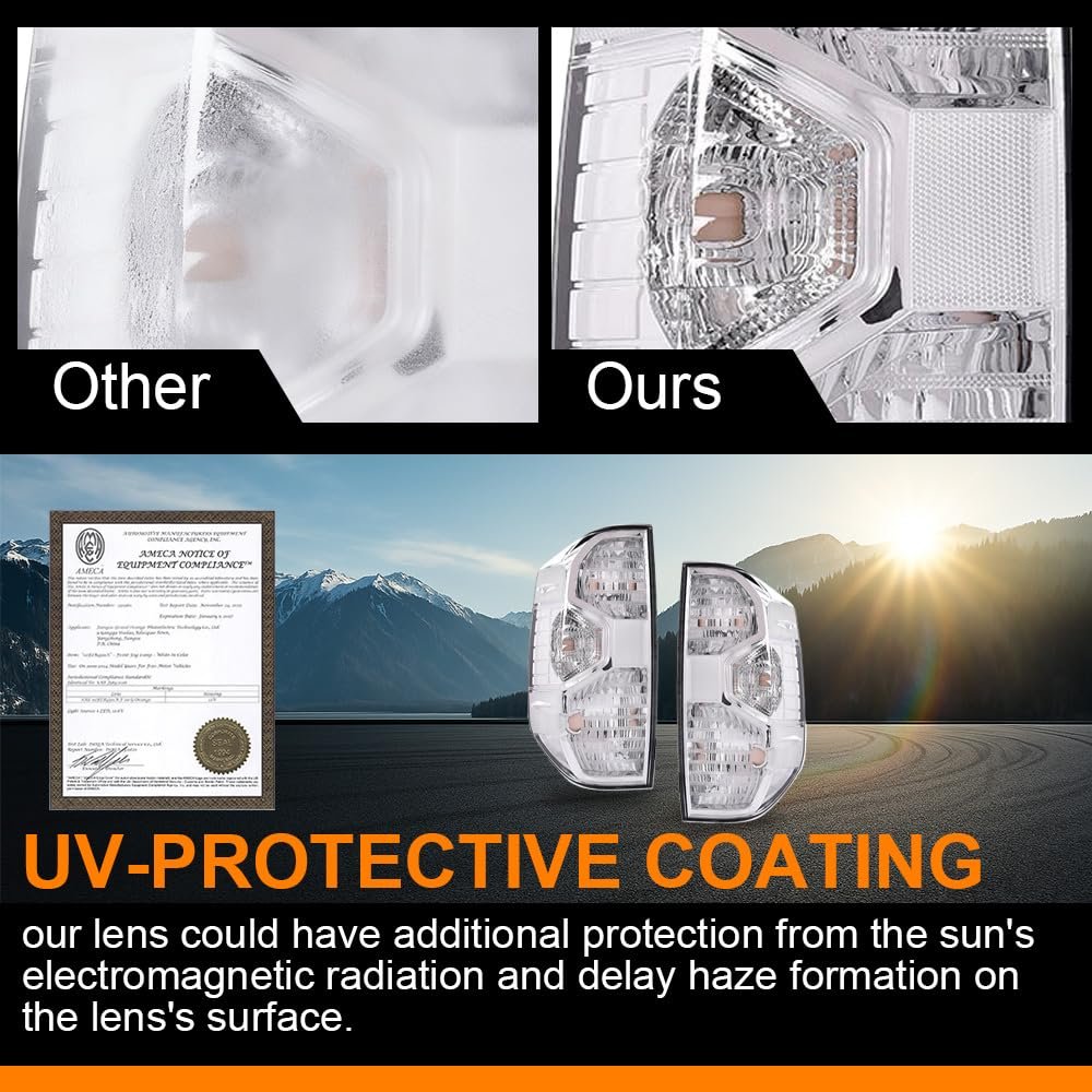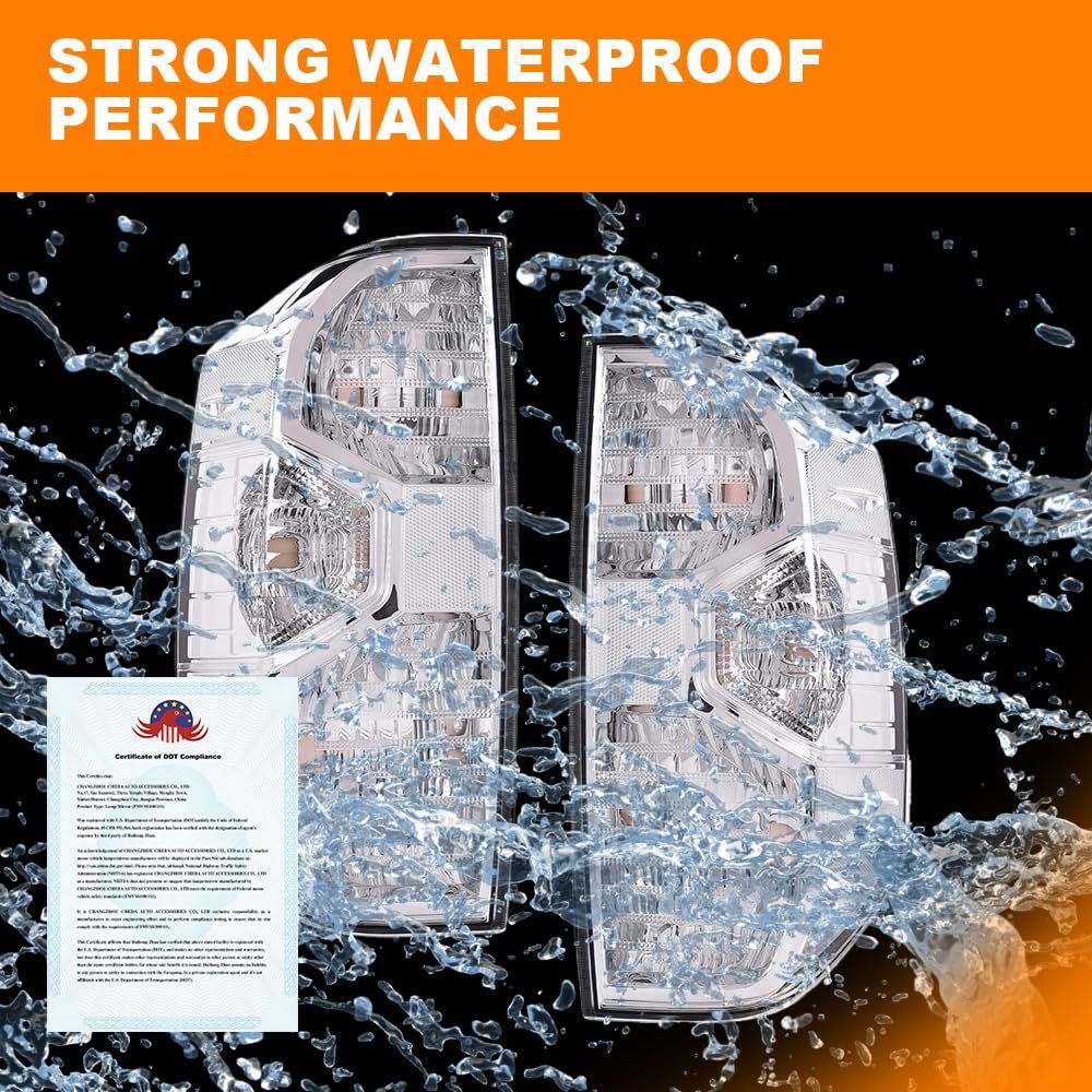 COMPATIBILITY:Compatible with Toyota Tundra Pickup Truck 2014 2015 2016 2017 2018 2019 2020 2021. PREMIUM MATERIAL:Tail light adopts PMMA material lampshade and ABS base, the whole structure of the light body is strong and durable, not easy to yellow or rupture, and the violent airflow will not affect the normal lighting function of the tail light.. OE STANDARD:Meets the Original Equipment (OE) standards.Interchange Part Number:815500C100. SEALED DESIGN:The tail light adopts sealed design, with one-way vent at the back, avoiding rain, snow, sand infiltration, effectively avoiding water vapor stagnation in the interior, ensuring normal illumination.. EASY TO USE: The design of the taillight has been subjected to strict quality inspection, and it is very easy to install and use, saving time and labor. Professional installation is highly recommended for first time use.Other fine products