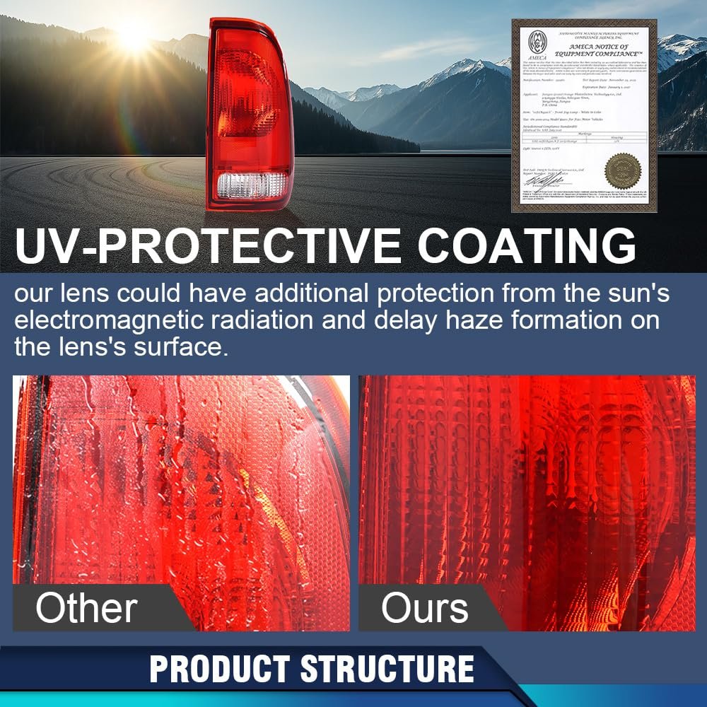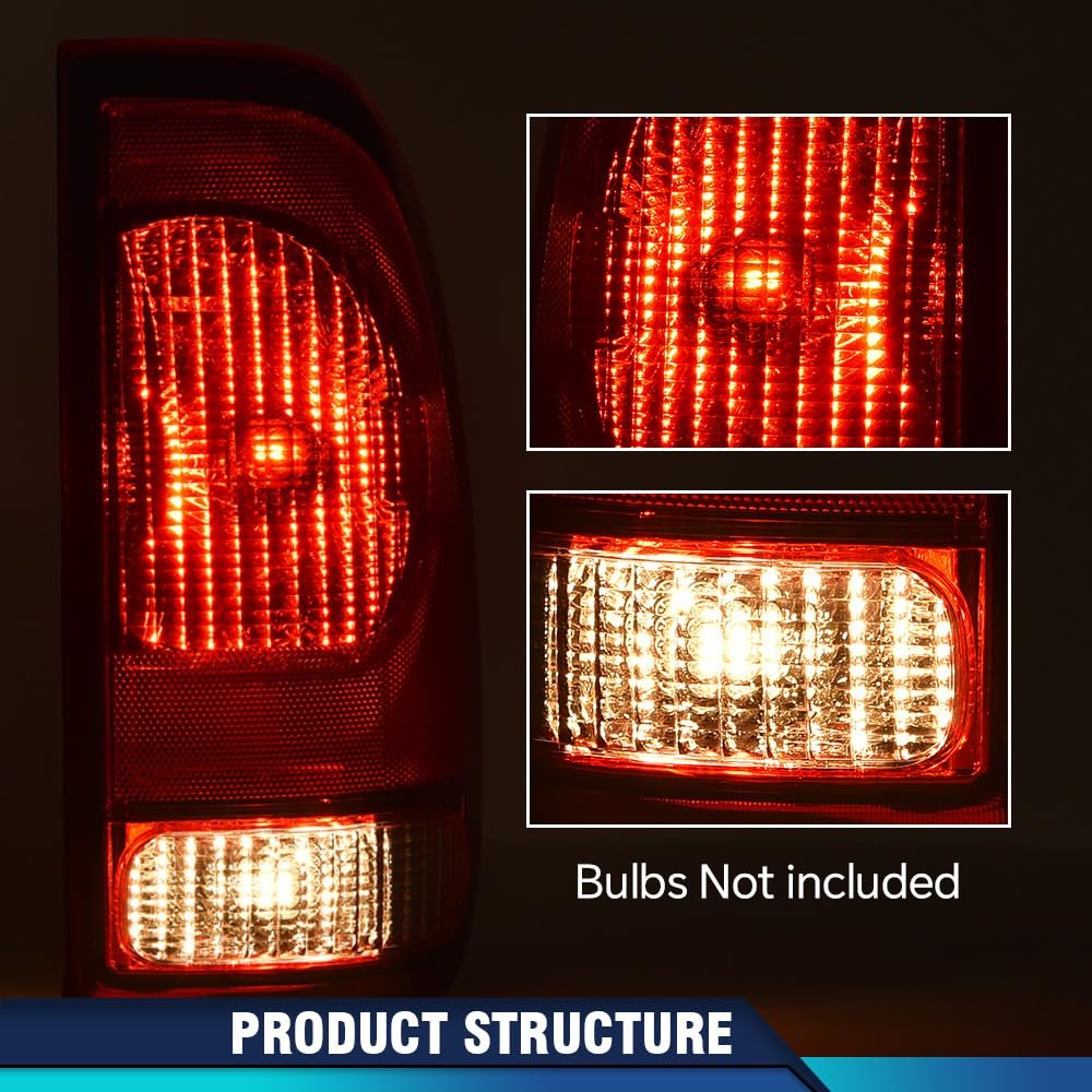 Fitment:Compatible with Ford F150 Stepside 1997-2004. Compatible with Ford F250 1997-1999. Compatible with Ford F250 F350 F450 F550 Super Duty 1999-2007.. OE Standard: Superior Durability and Impact Resistance.Meets the Original Equipment (OE) standards. Interchange part number: F85Z13404CA, F85Z13405CA, FO2801117, FO2800117.. DOT/SAE certification:Severe bumpy driving will not hinder the normal illumination of the tail lights. Adopting a fully sealed design and equipped with one-way ventilation openings to prevent moisture from being trapped inside.. Fully sealed design:Adopting a fully sealed design and equipped with one-way ventilation openings to prevent moisture from being trapped inside.Enhance rear visibility and appearance, making your vehicle more easily visible to other drivers and passengers to ensure driving safety..