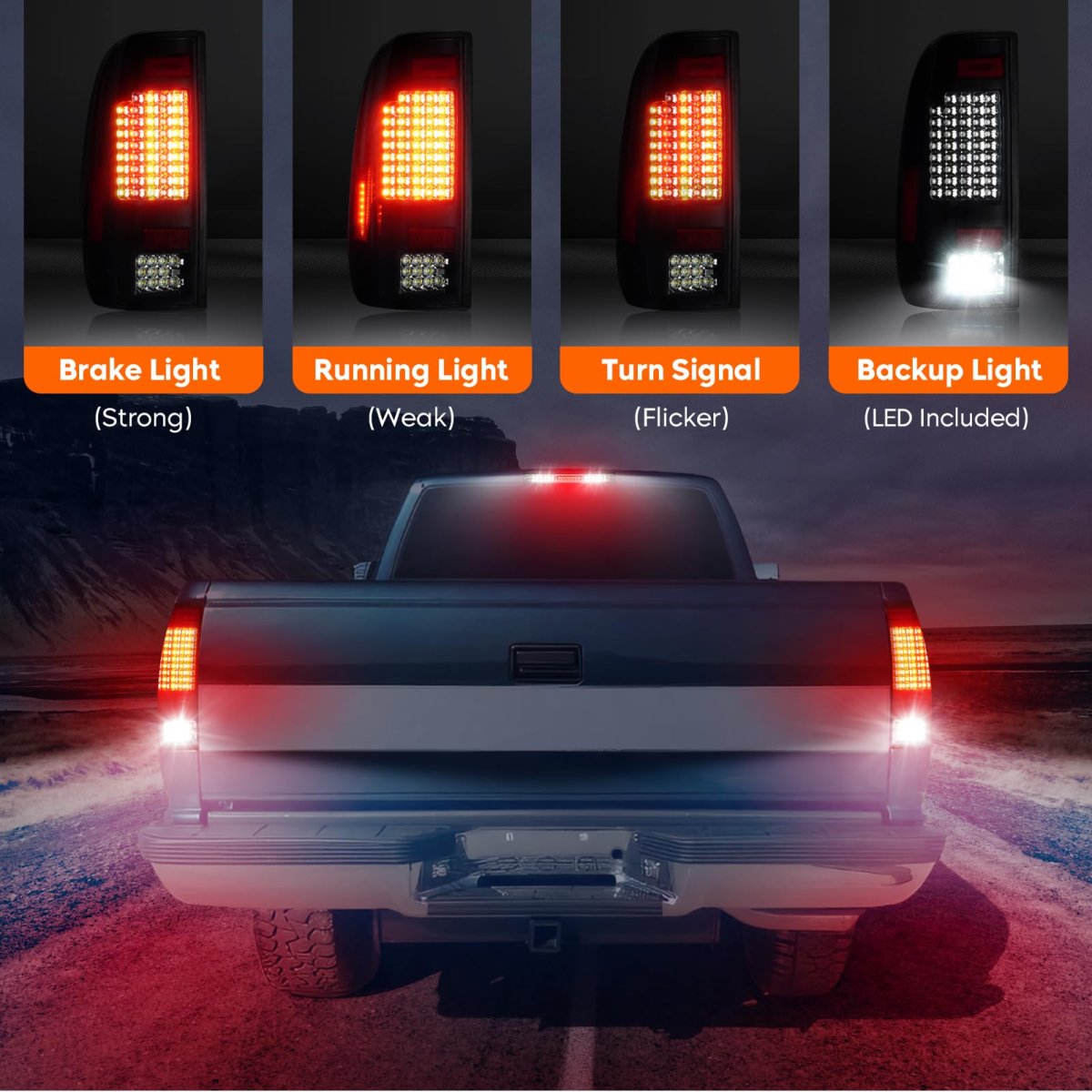 All-in-one Taillight: LED running light, brake light, turn signal light, reverse light (backup light). The backup light contains LED beads, you don't need to reuse your old backup bulb.. All-in-one Brake Light: Brake light + cargo light function.. Compatible with: for Ford F-150 1997-2003, for Ford F-150 Heritage 2004, for Ford F250 Light Duty (7 Lug Nut) 1997-1999, Only Fits Styleside/ Fleetside Models, Don't Fit Flareside/ Stepside Models, Not Compatible with F150 4-Door/ SuperCrew Models. Replace for Part Number: F85Z13405CA, F85Z13404CA, FO2800117, FO2801117. Strict Quality Control: Tresound lights are always manufactured to meet specifications. During each step of production, multiple quality control checks are performed to ensure each and every part lasts for years to come..Other fine products