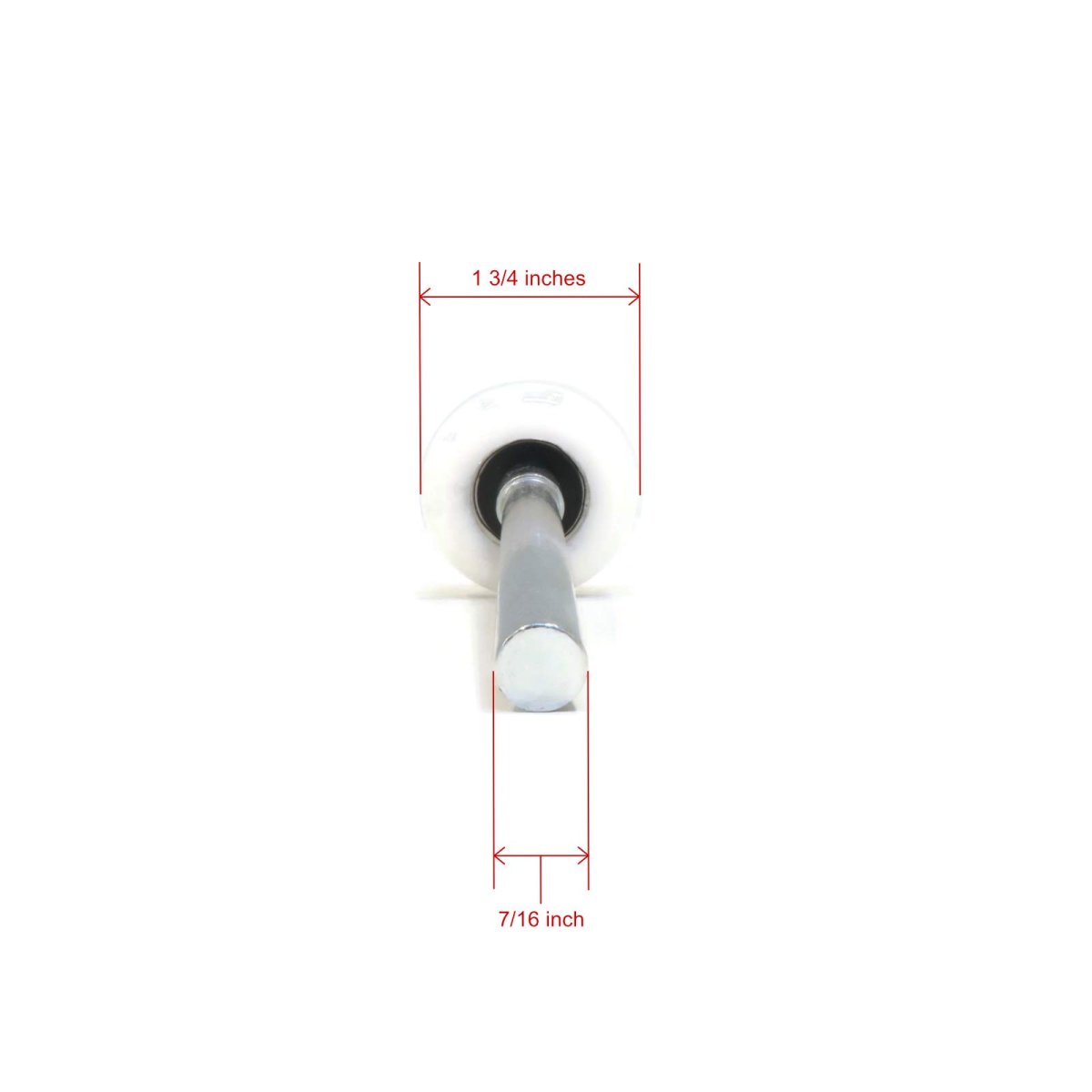 The ROP Shop Pack of 10 Garage Door 2" Nylon Rollers with Cap, 4" Stem & 13-Ball Precision Bearing Quiet Heavy Duty. Specs - Roller Diameter: 1 13/16" for a 2" track. Roller Thickness: 1/2". Stem Length: 4 1/8" (3.5" from bevel). Stem Diameter: 7/16". Single Load: 150lbs. Bearing Type: 6200ZZ Precision. Roller Material: Nylon. Roller Color: White. Refer to images 2 & 3. Includes - (10) Sealed Nylon Garage Door Rollers; comes as shown in the first image. Rollers are constructed from nylon that is softer and quieter than plastic or metal rollers and smoother than original equipment rollers. Features a reinforced dual-wall bearing cage, sealed precision ball bearing with backside protective dust shield. Plus double plating thickness on stem is designed for max performance and ultra-life weather protection. Garage door roller rated for up to 20,000 cycles on a 12' door. Installation Tips - Method 1: Slightly bend track at the seam to remove, replace roller and move the door to do the next roller (repeat on other side). Method 2: Remove screws that attach brackets to your door, secure cable before releasing the bottom brackets that are under the cable spring tension, then clamp the cable to the track, slide out old rollers, place new rollers in their place and screw in backers.Other fine products