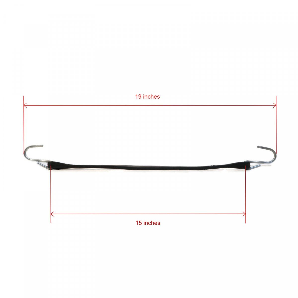 The ROP Shop replacement (Pack of 6) 21" Black Rubber Tarp Strap for Camper Grade Tie Down. Specs - Length: 21". Length with Hooks: 25 1/2". Strap Thickness: 1/4". Color: Black. Refer to image 2 for more information. Includes - (6) 21" Black Rubber Tarp Strap (Bungee Cord); comes as shown in the first image. Heavy duty, adjustable natural stretch rubber with metal hooks on each end. Multi-purpose use.Other fine products