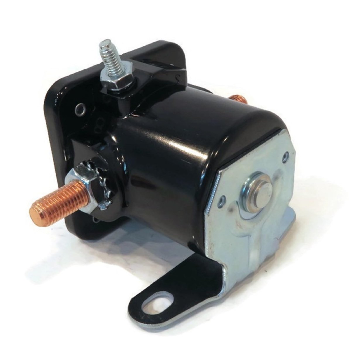 The ROP Shop Snowplow Starter Motor Control Solenoid, Ground to Active, replaces Fisher 8722. Specs - Terminals: 3. Duty: Intermittent. Amp: 100. Switch Style: Grounded Switch. Mount Style: Right Angle Bracket. Refer to images 2 & 3 for more information. Includes - (1) Starter Motor Control Solenoid, (4) Jam Nuts, (2) Lock Washers (for jam nuts), (2) Machine Nuts & (1) Lock Washer (for machine nut); comes as shown in the first image. Must be mounted on metal or grounded.Other fine products