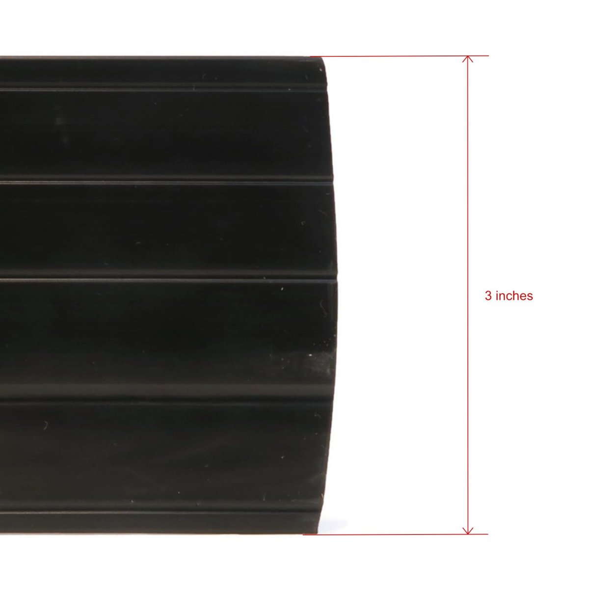 The ROP Shop Universal 10' Black Flexible Rubber Garage Door Threshold, Weather Strip Seal. Specs - Length: approx. 10', Height: 3". Refer to images 2 & 3 for more information. Includes - (1) 10' Black Garage Door Threshold Weather Seal; comes as shown in the first image. Adhesive/cement necessary for installation is NOT INCLUDED. Creates a tight seal for your garage door which will keep insects, pests, leaves, dirt, water and snow from being blown under the garage door by the wind. By creating a better seal, your garage will stay warmer during the winter and cooler during the summer, helping to keep your energy cost down. Highly durable and able to withstand being driven over by most vehicles. The door seal works great with all types of garage doors including roll up doors, hinged wood doors and walk through doors. Perfect solution for gaps from older warped garage doors, uneven concrete or pavement, poor drainage areas..Other fine products