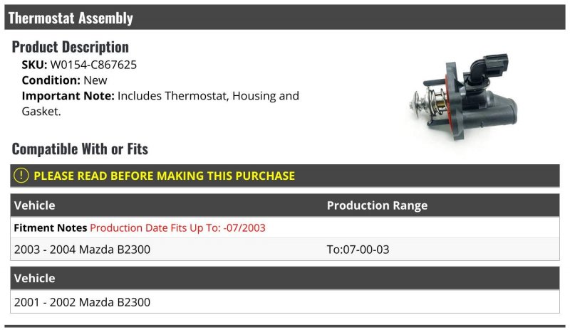 - Thermostat Housing Assembly With And Gasket For 2001-2004 Mazda B2300 Up To 7 2003